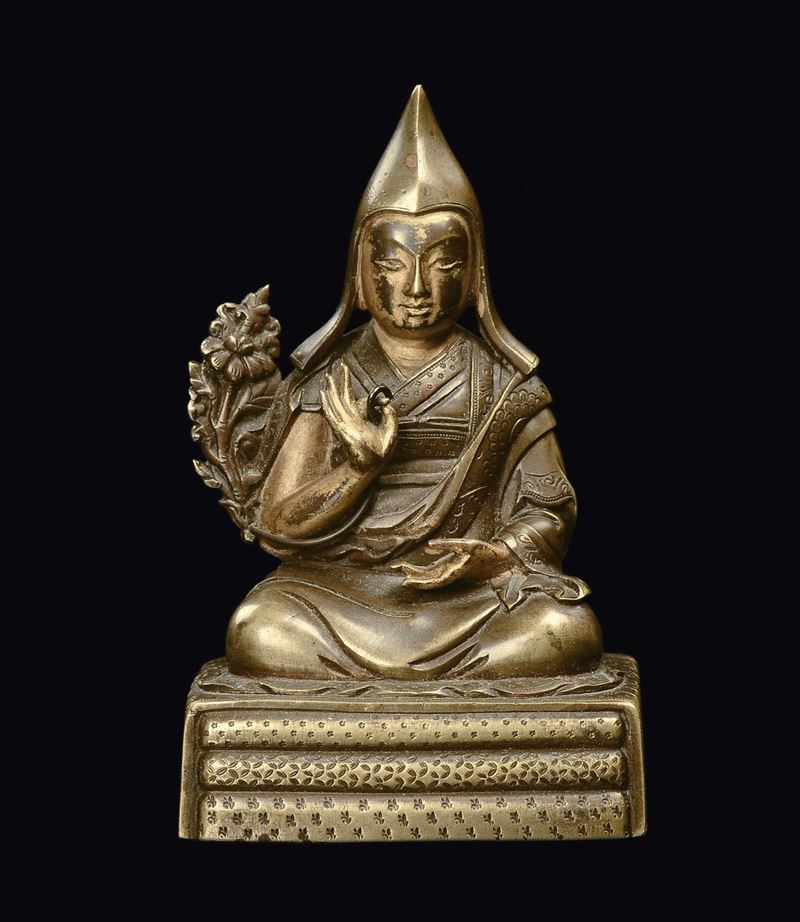 A gilt bronze Tsongkhapa figure, Tibet, 18th century