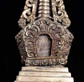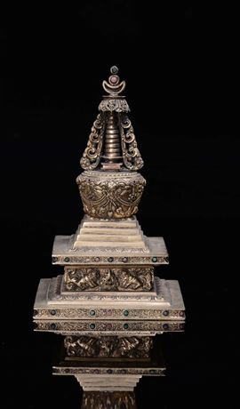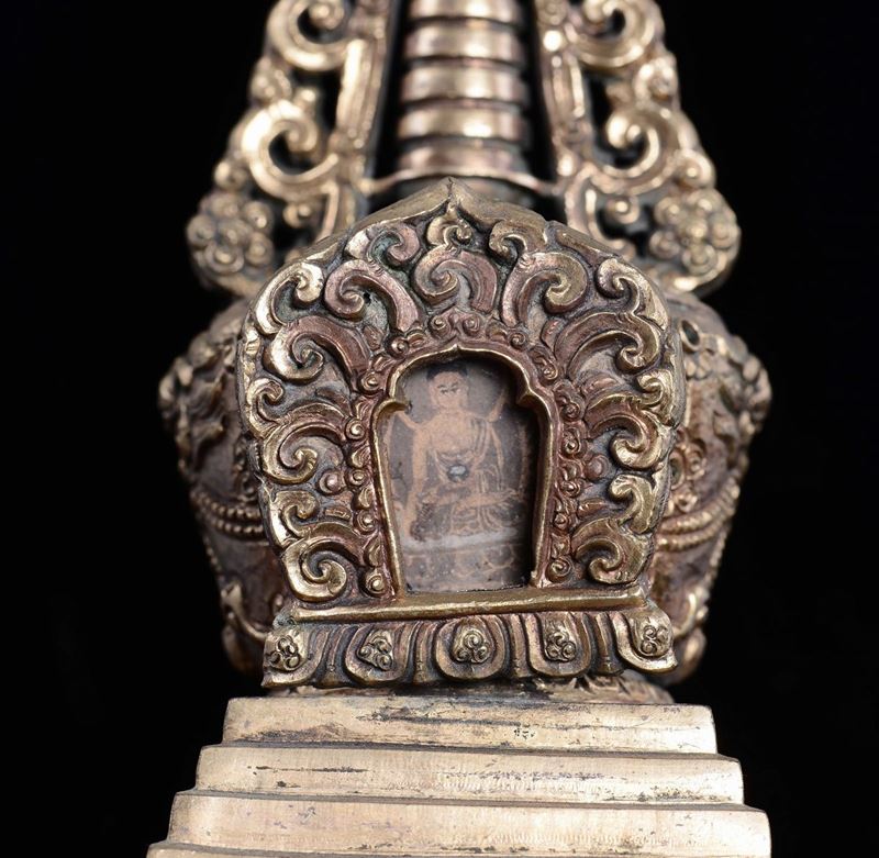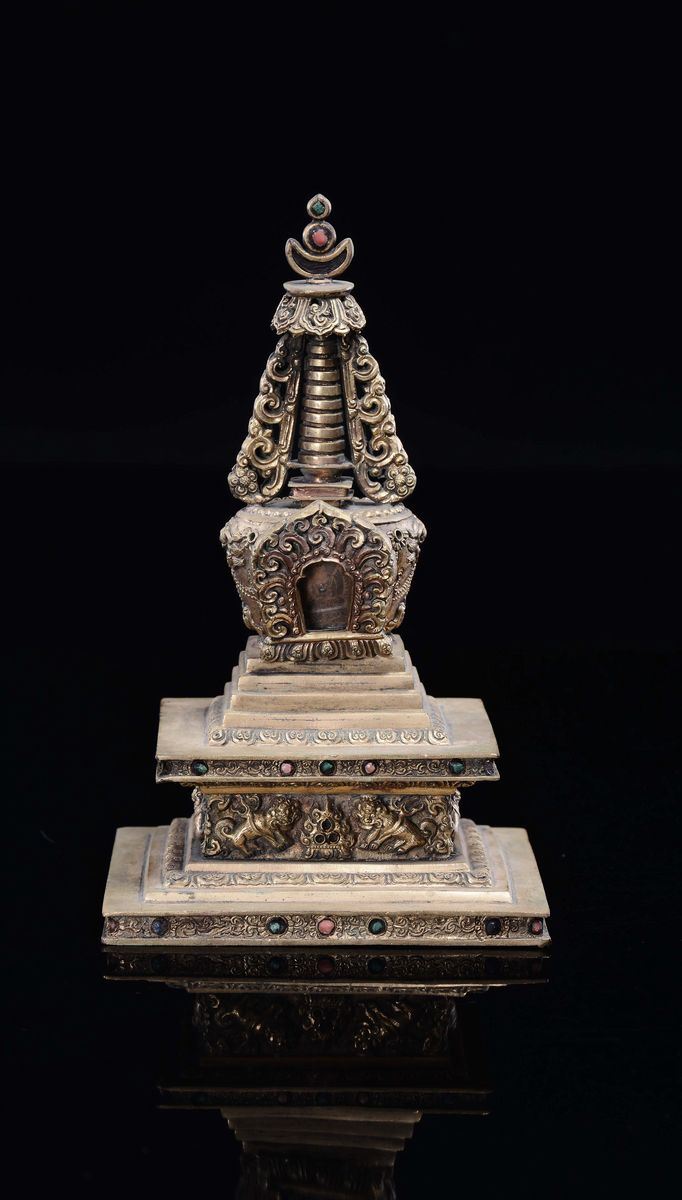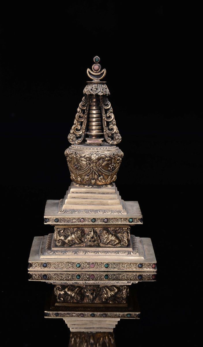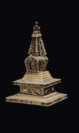 A gilt repoussé copper model of a stupa, Tibet, 18th century