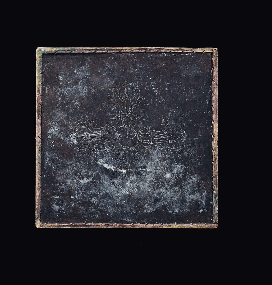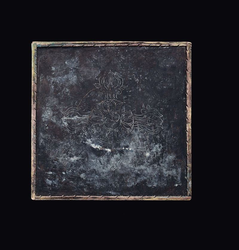 con immagine votiva di Buddha centrale e attorno volti di animali che sorreggono fili di collane.h cm 19
