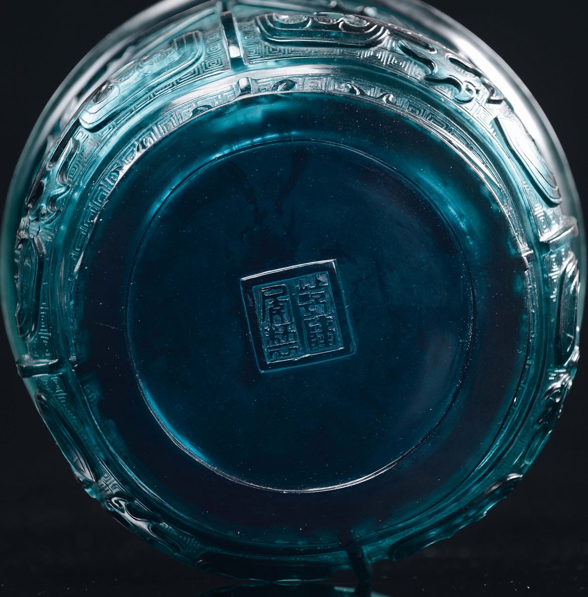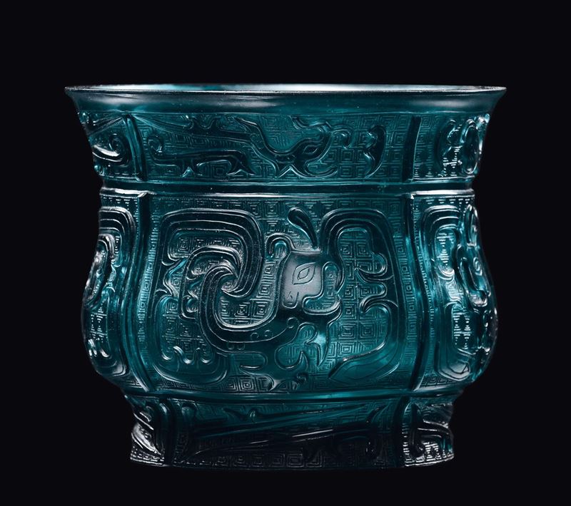 A green Beijing glass vase with archaic decoration, China, 20th century