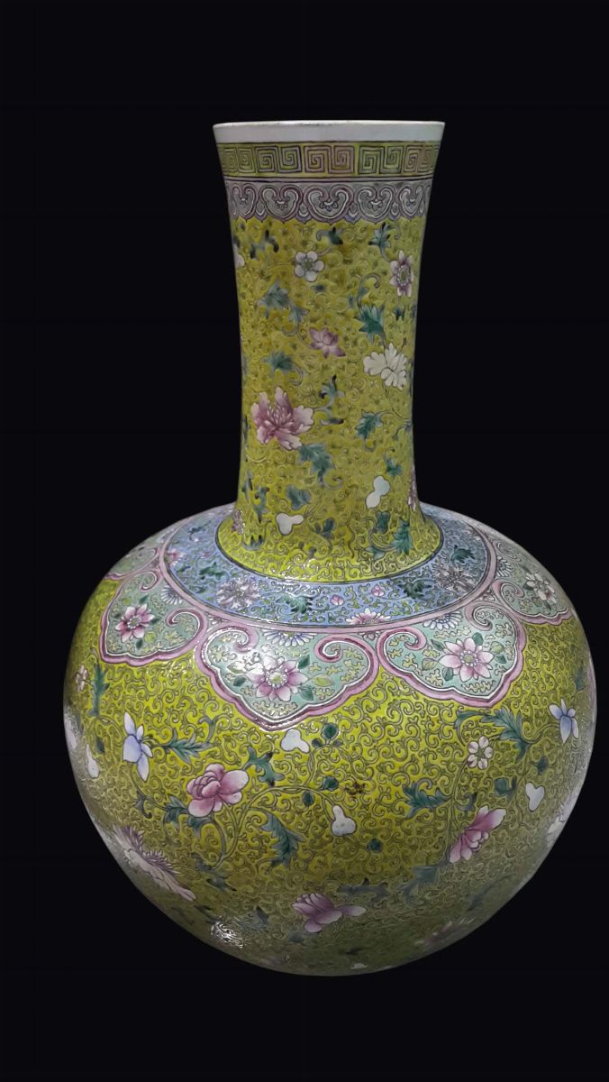 A large Famille Rose vase yellow-ground with floral decoration, China, Qing Dynasty, Guangxu Period (1875-1908)