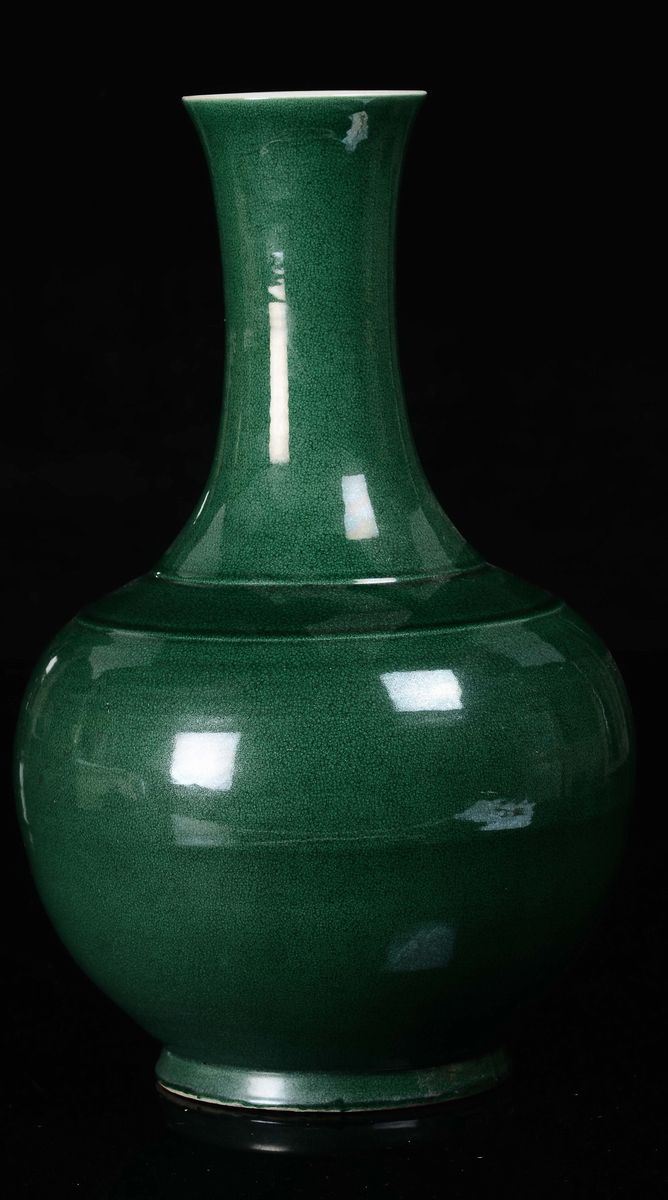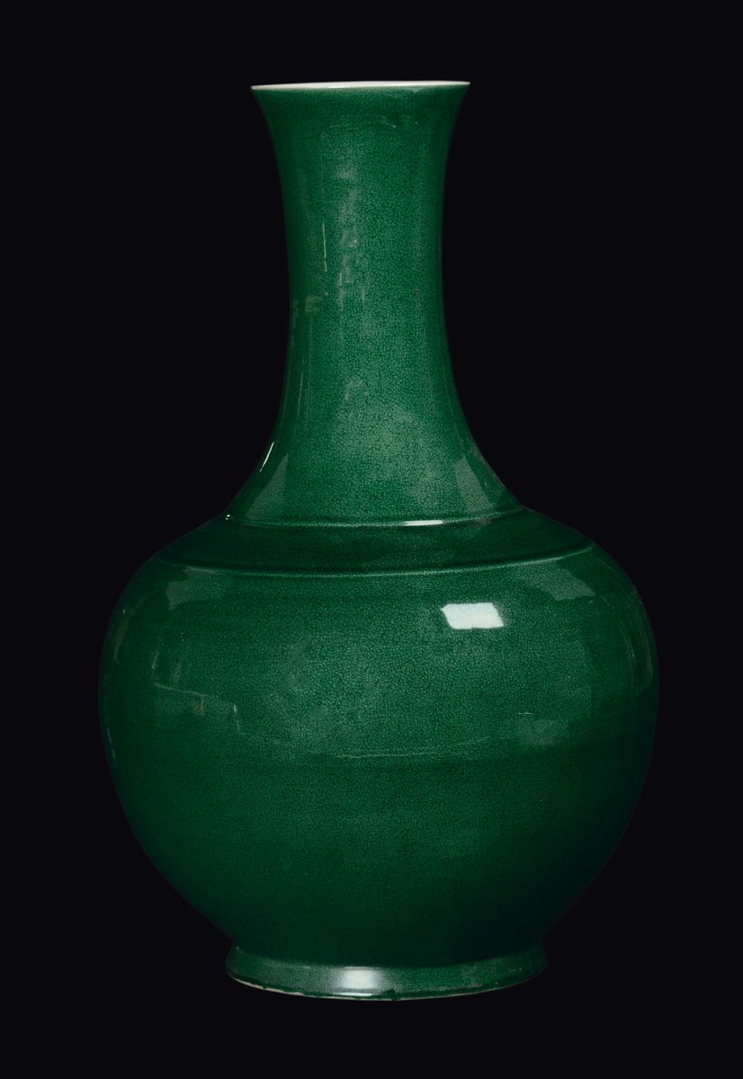 A monochrome emerald green porcelain vase, China, Qing Dynasty, 18th century