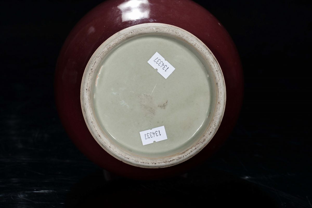 A monochrome red porcelain vase, China, Qing Dynasty, Qianlong Period (1736-1795)