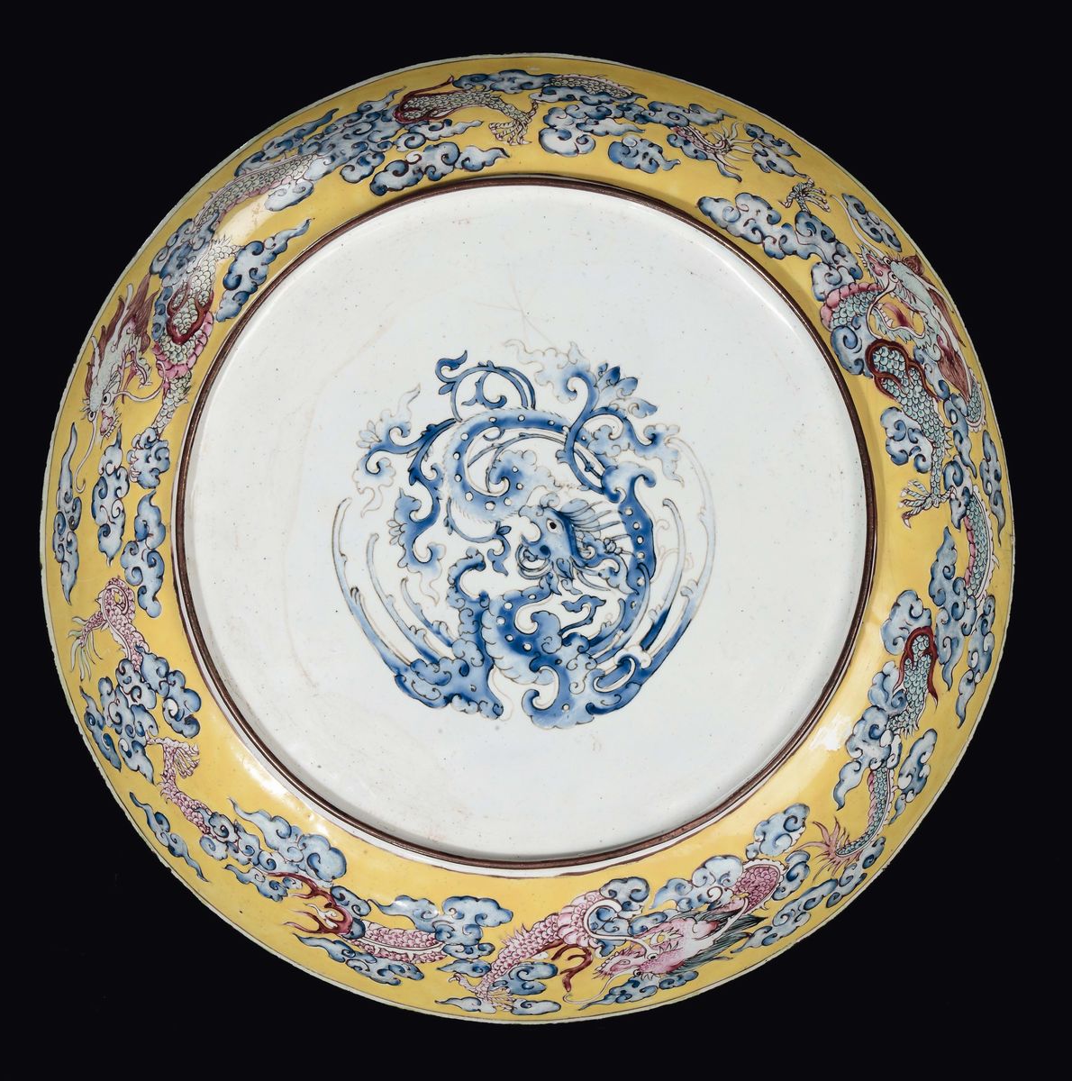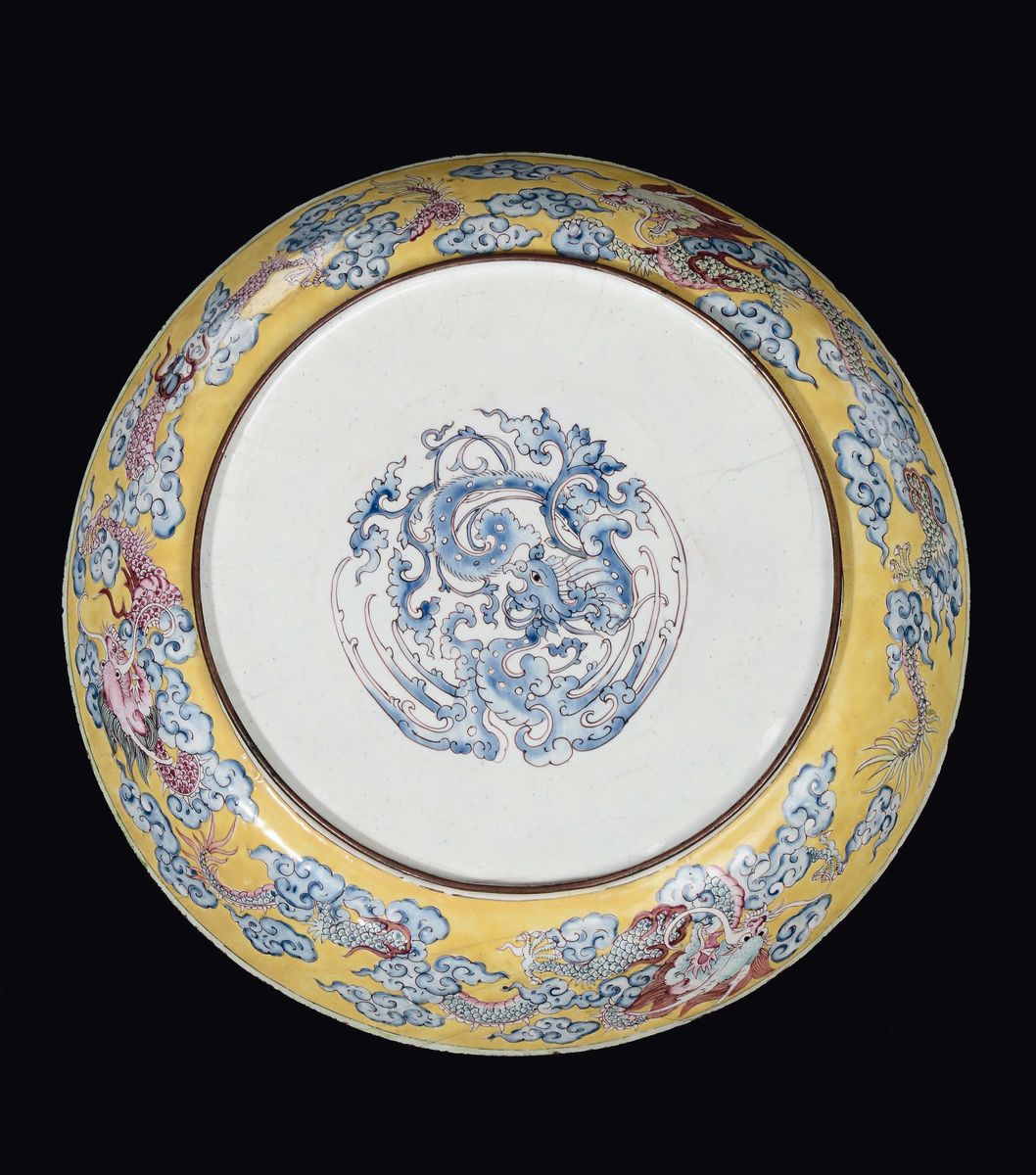 A pair of Famille Rose glaze dish with dragon and edge decorations of bats and lotus flowers, China, Qing Dynasty, Qianlong [..]