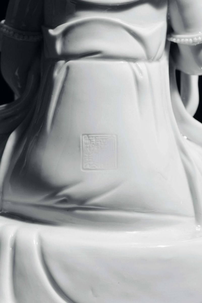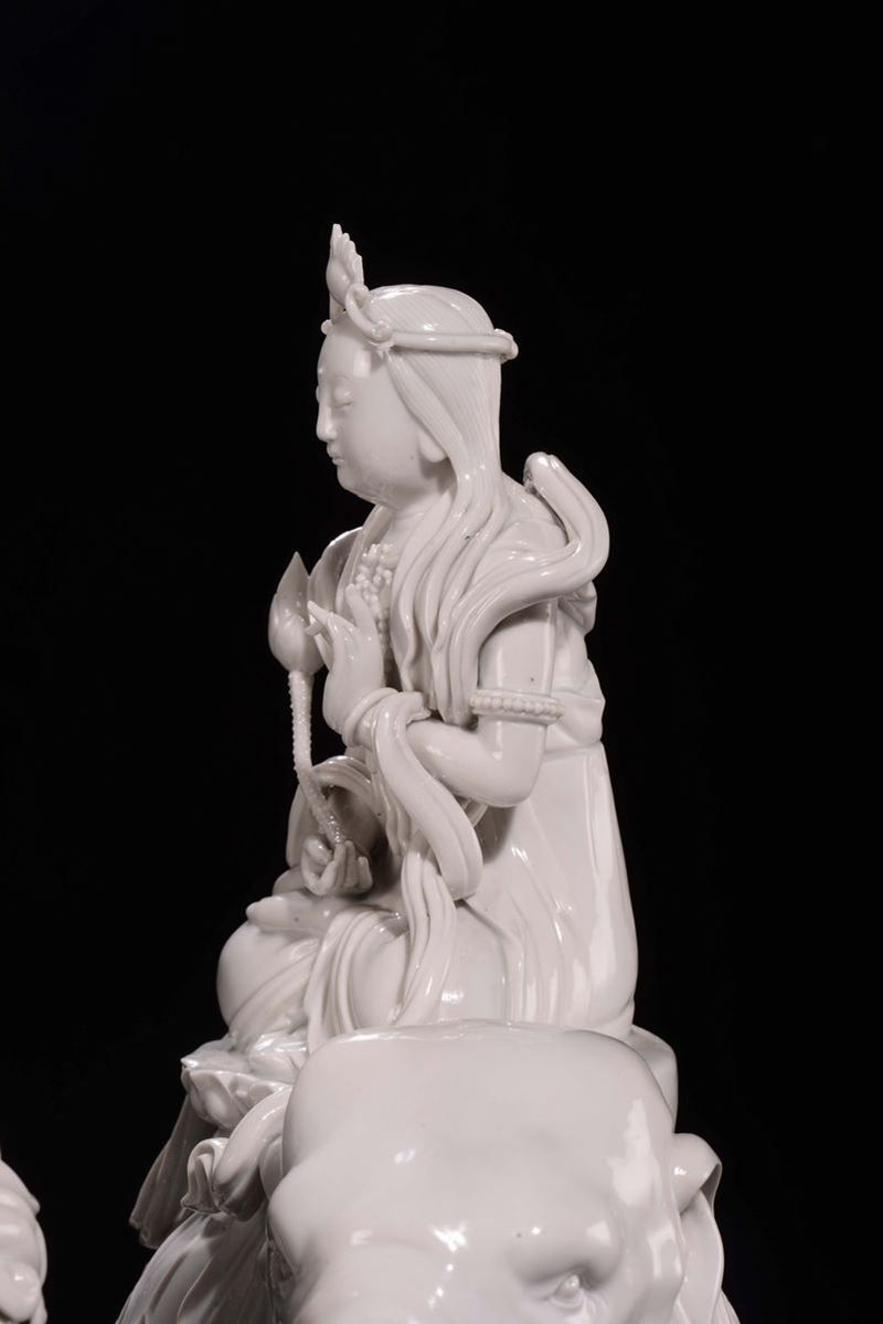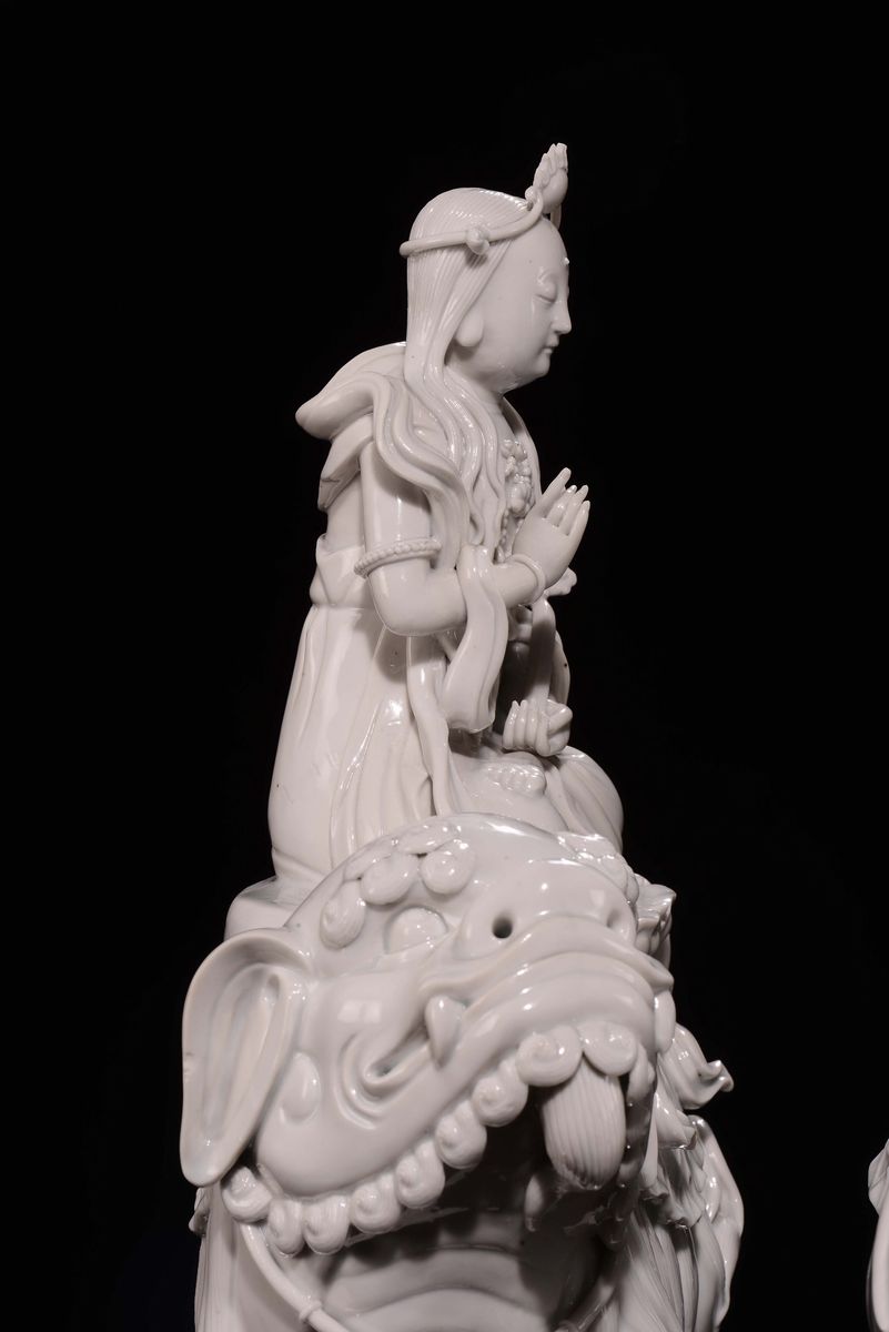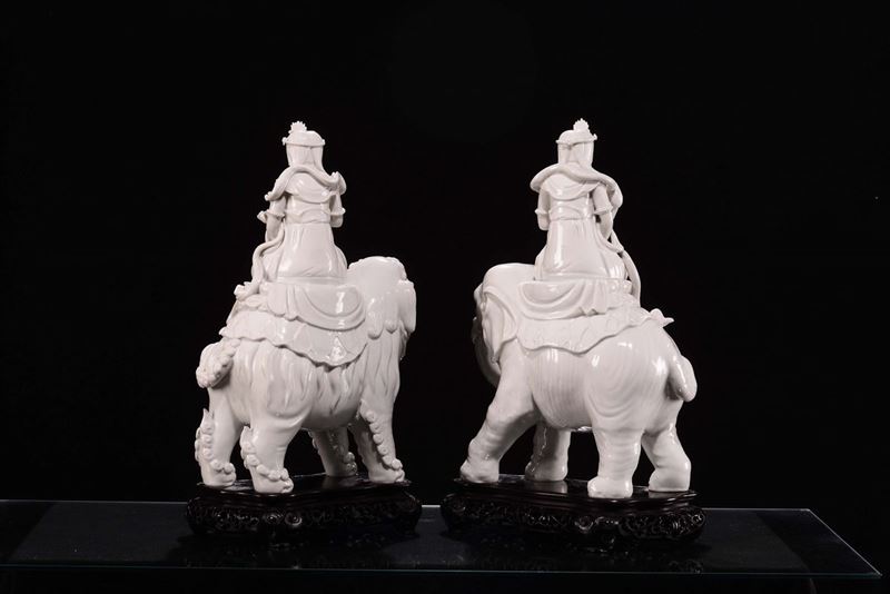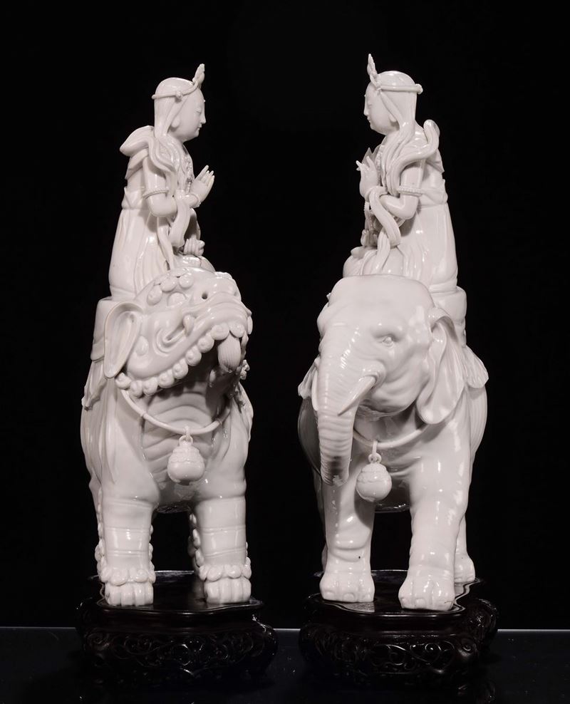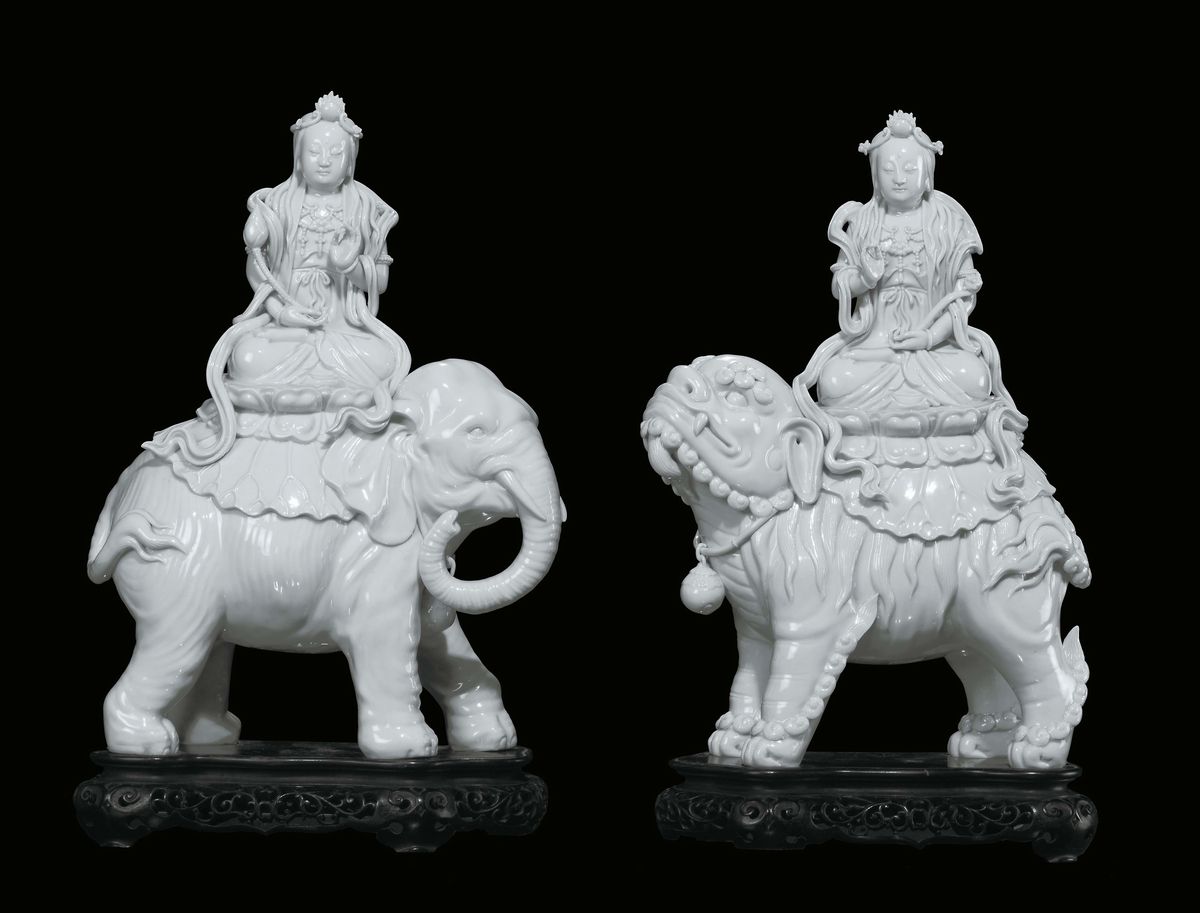 A pair of Guanyin figures on elephant and Pho dog, China, Qing Dynasty, late 19th century