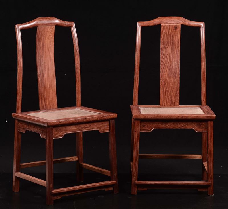 A pair of Hungali wood chairs, China, Qing Dynasty, 19th century