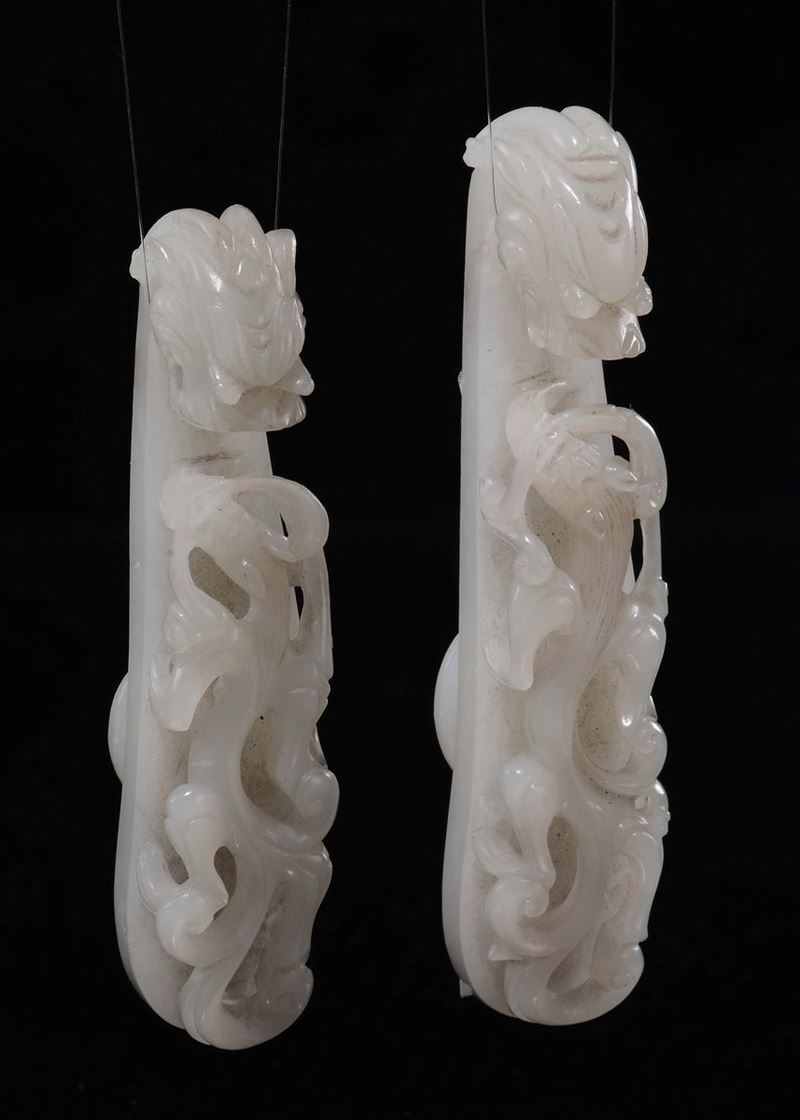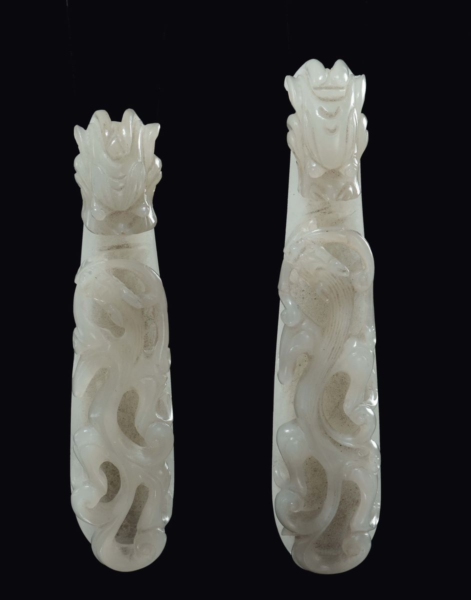 A pair of white jade dragon belthooks, China, Qing Dynasty, Qianlong period (1736-1795)