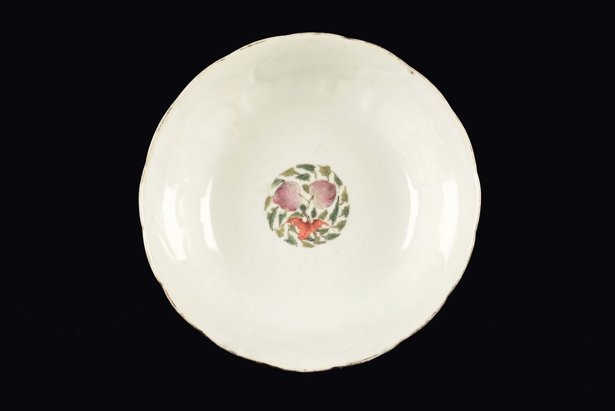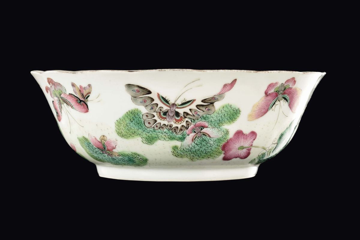 A polychrome porcelain cup with butterflies and flowers, China, Qing Dynasty, 19th century