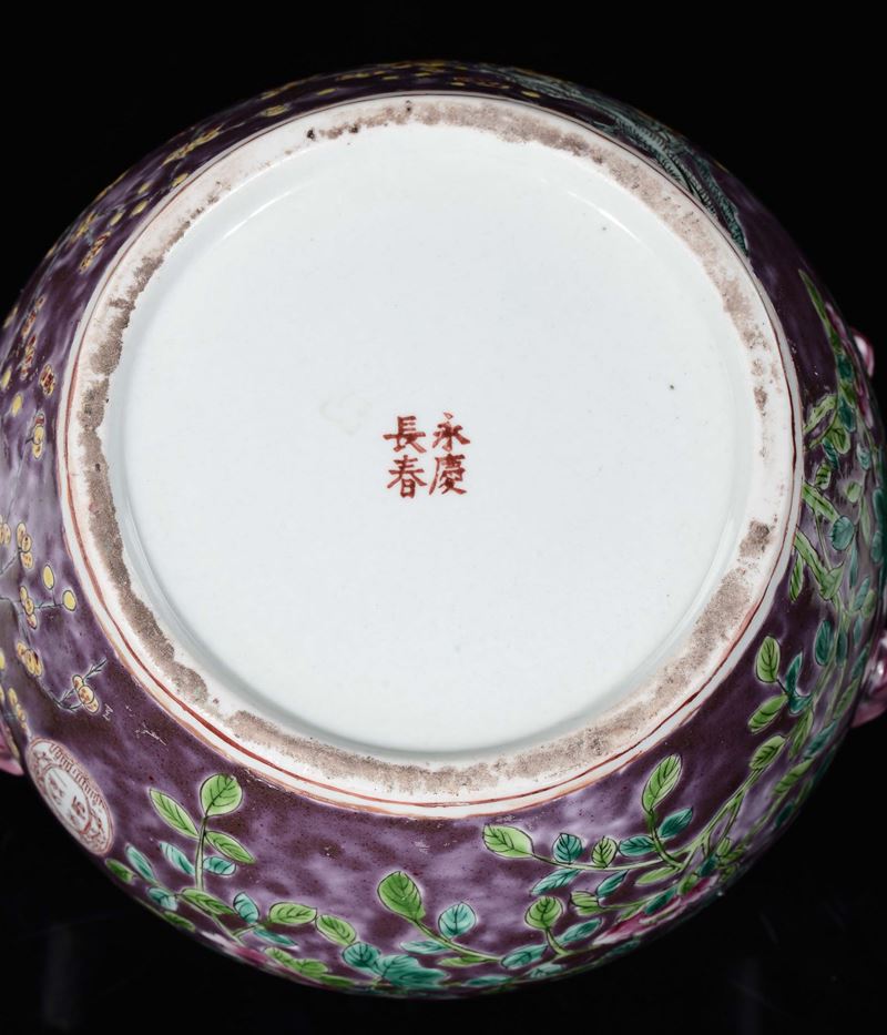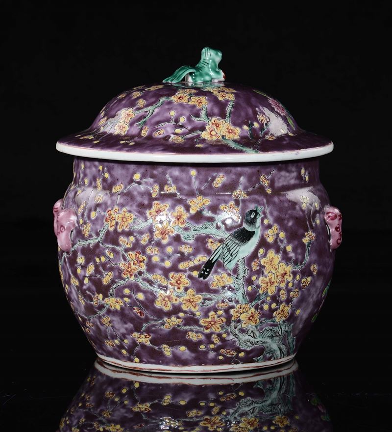 marchio apocrifo Guangxu.sul coperchio raffigurazione di uccellini che si abbeverano.h cm 23