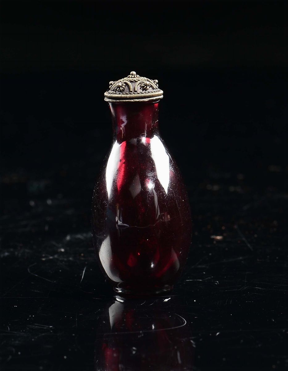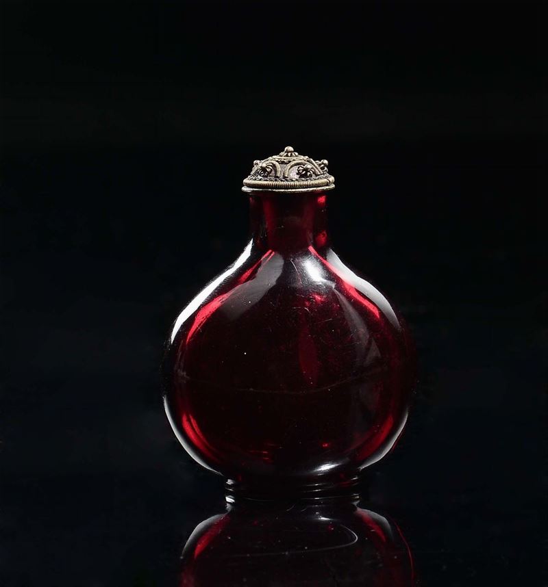 A red Beijing glass snuff bottle, China, Qing Dynasty, 19th century