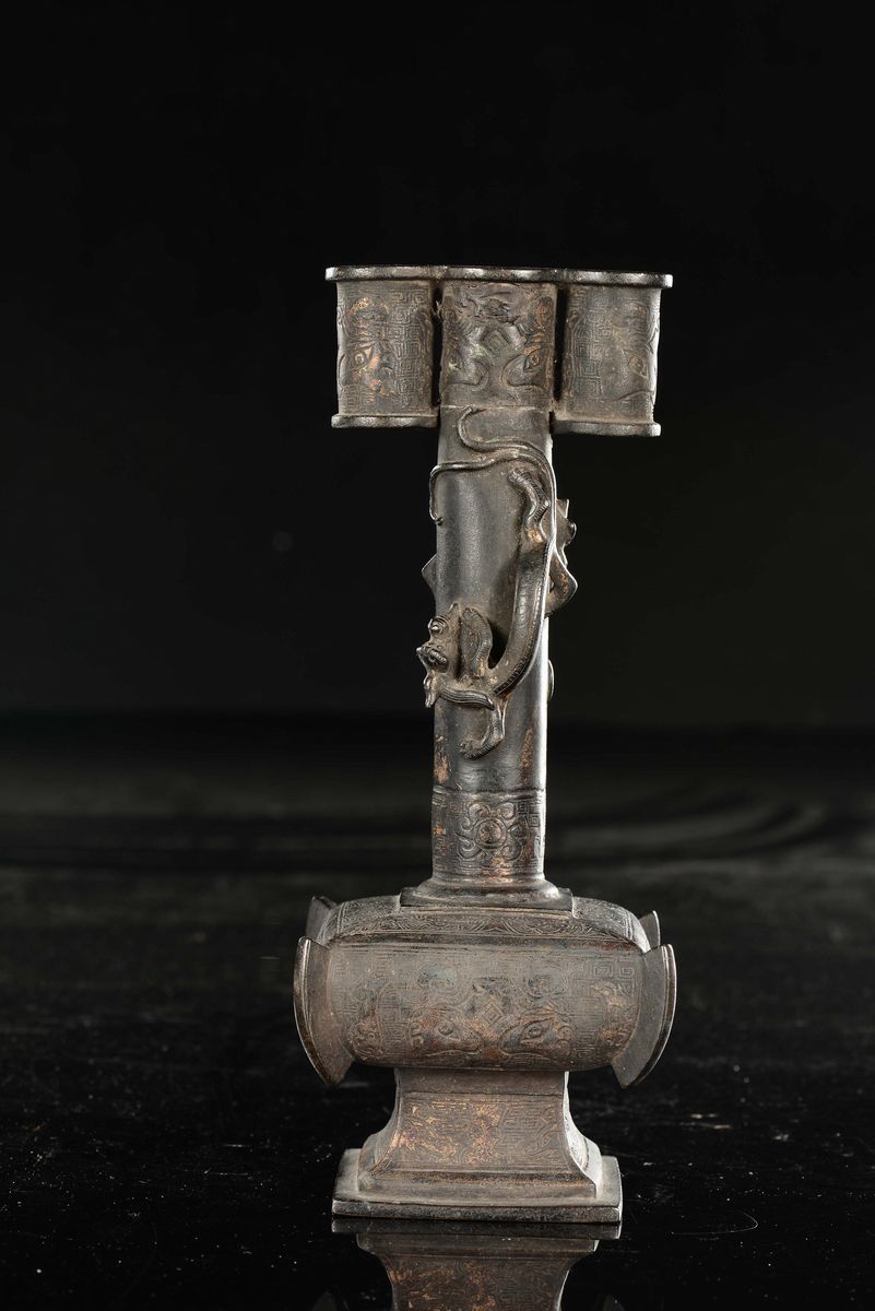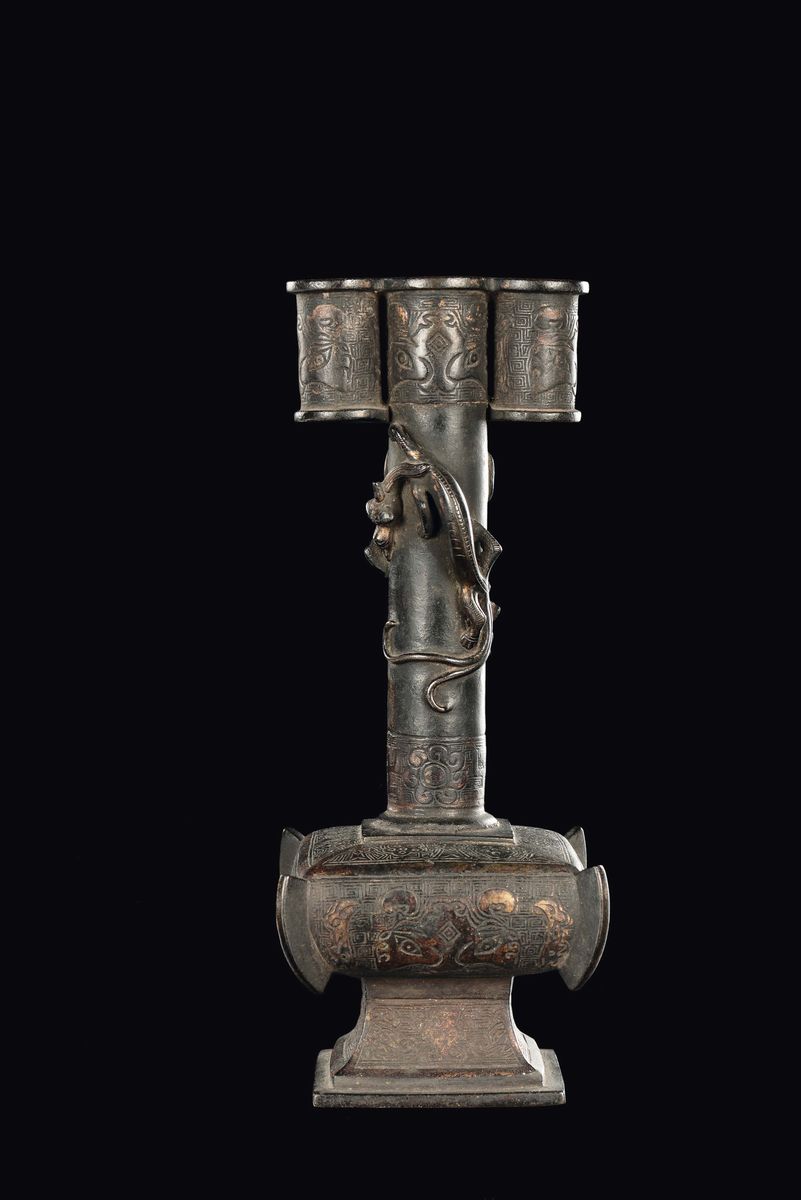 A semi-gilt bronze vase with small dragons in relief, China, Ming Dynasty, 17th century