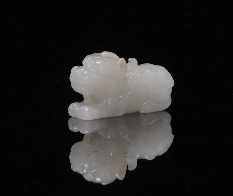 A small Pho dog white jade, China, Qing Dynasty, 19th century
