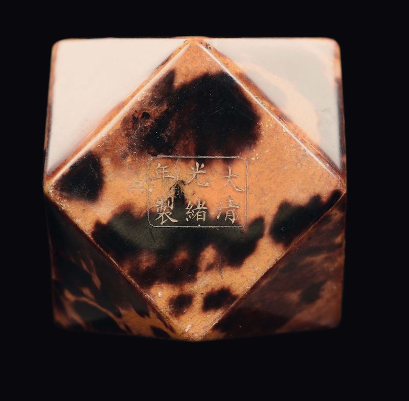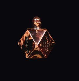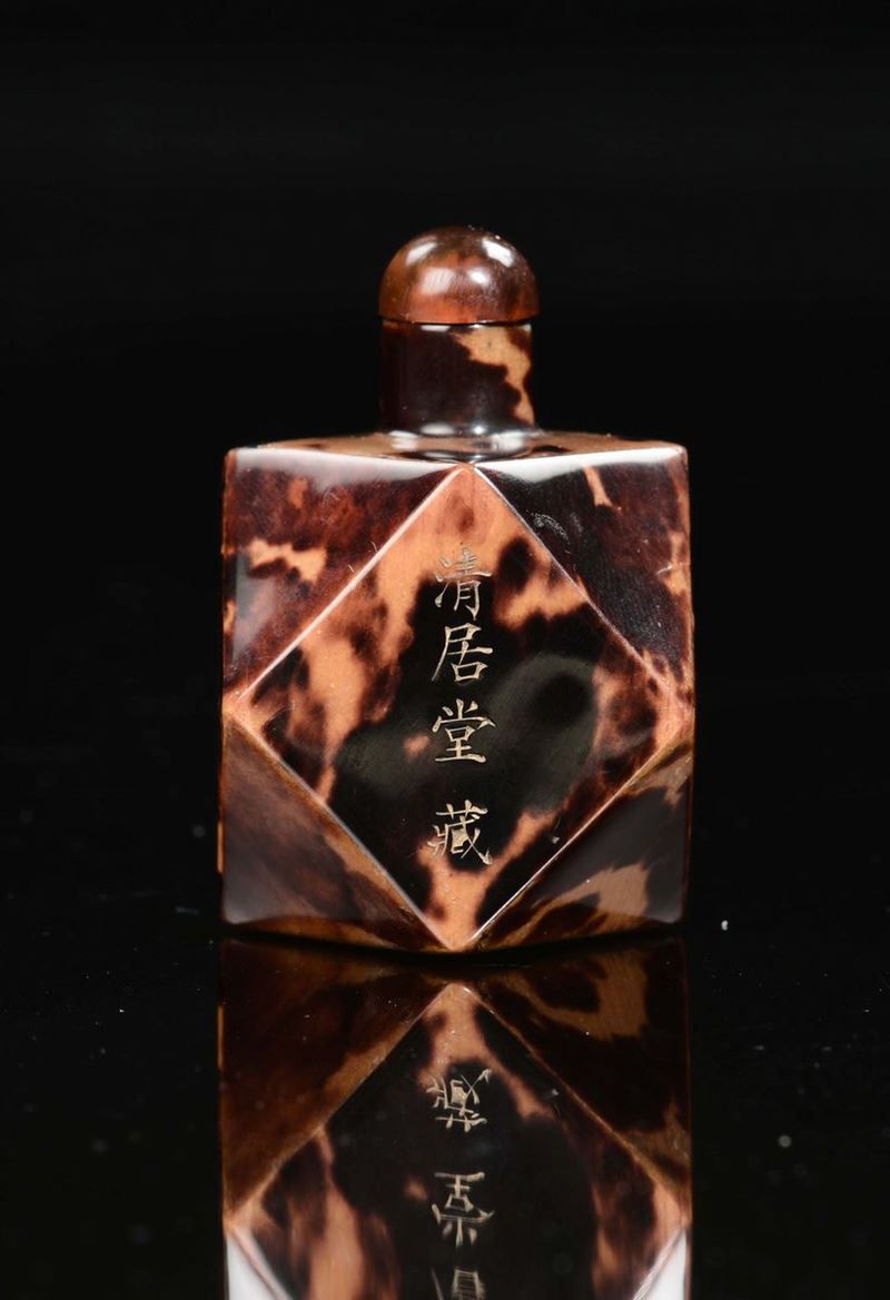 A tortoiseshell polyhedral snuff bottle with inscriptions, China, Qing Dynasty, Guangxu Mark and Period (1875-1908)