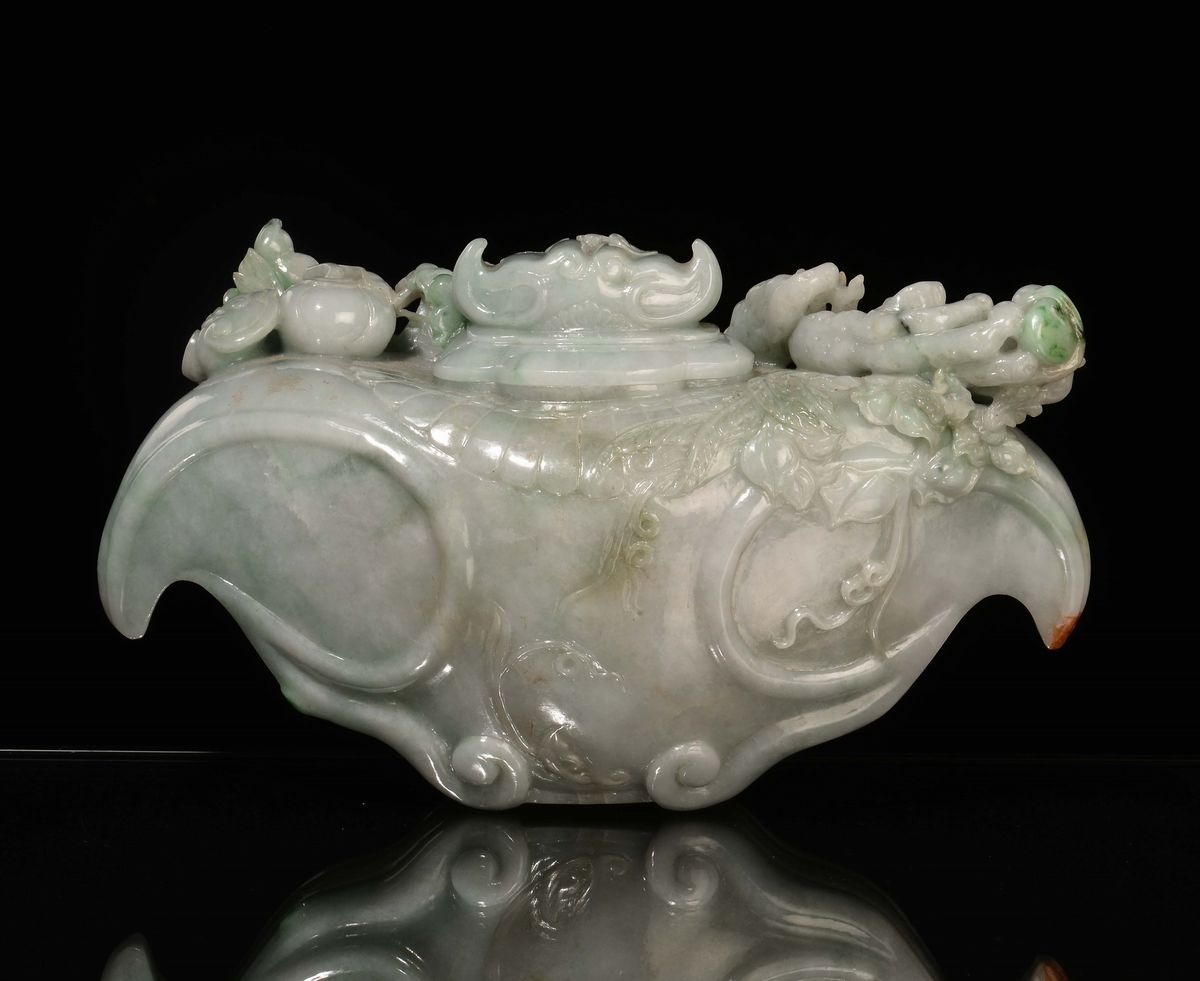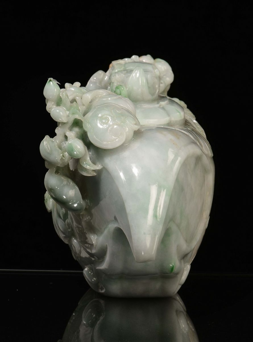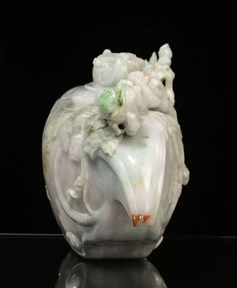 A white and apple green jadeite vase and cover with relief fruit, China, early 20th century