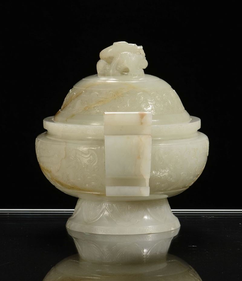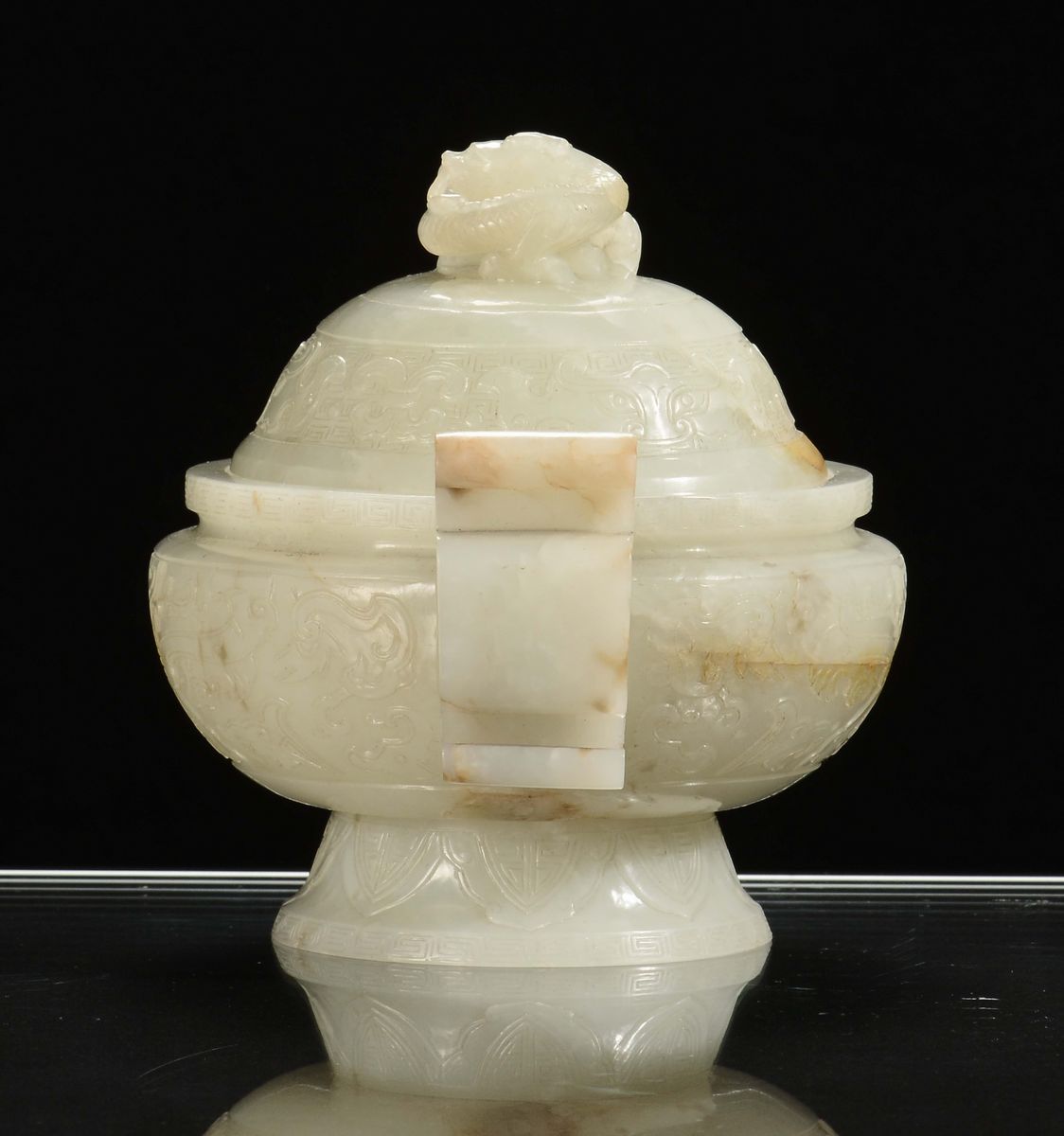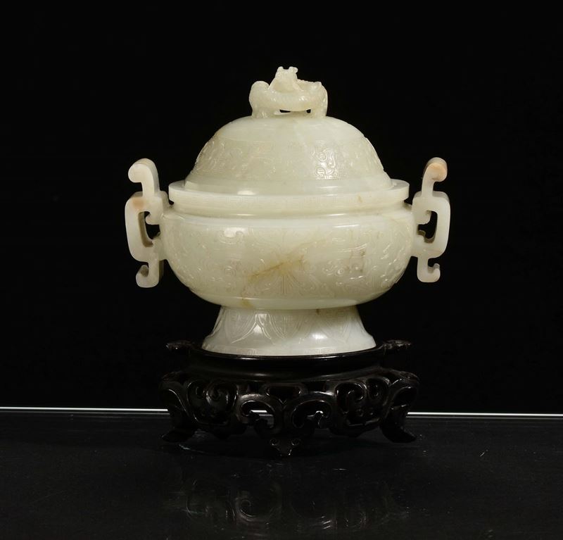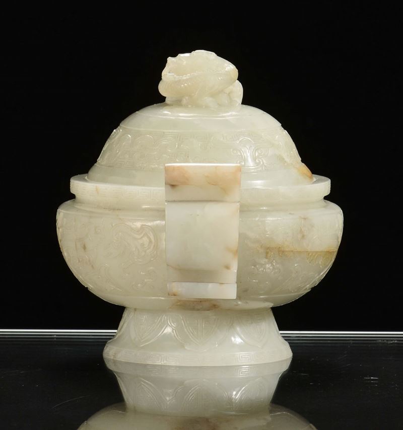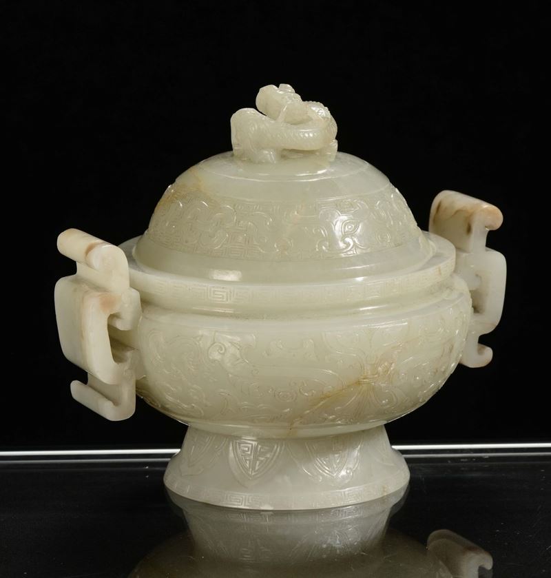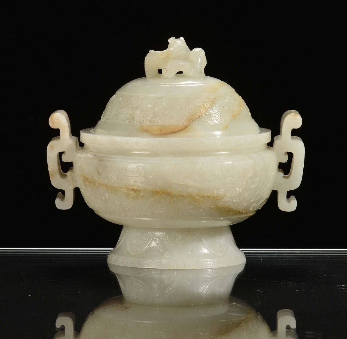 A white jade censer and a cover, China, Qing Dynasty, 18th century