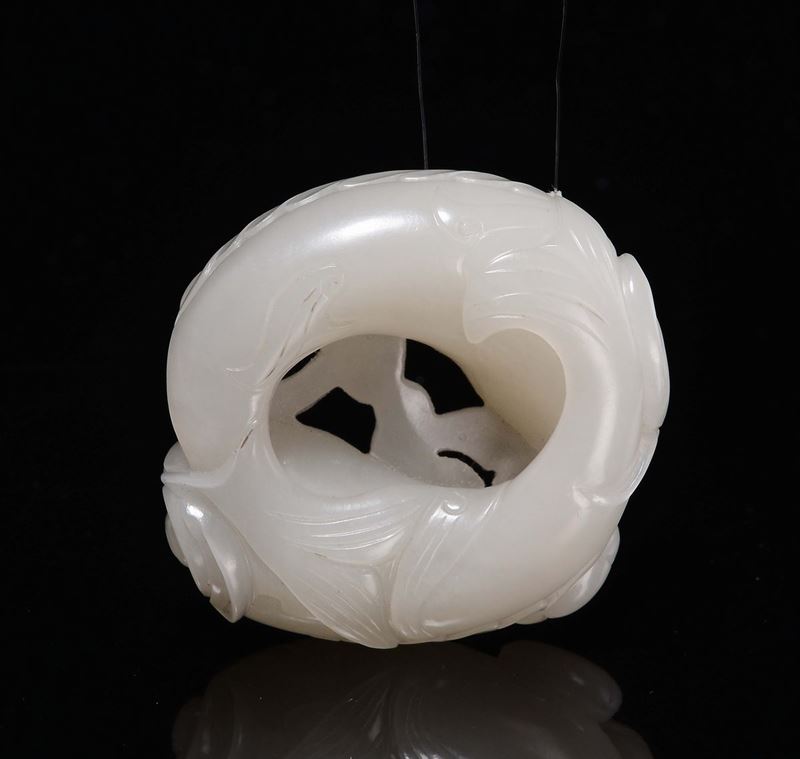 A white jade circular fish group, China, Qing Dynasty, 19th century