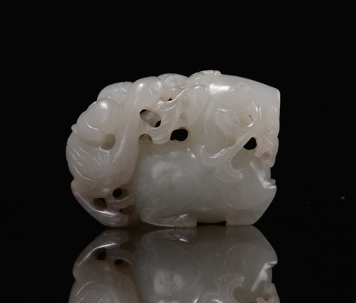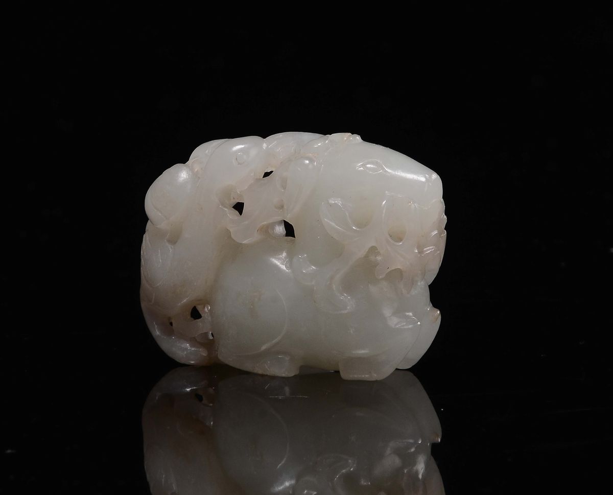 A white jade horse and gus between leaves branches group, China, Qing Dynasty, Qianlong Period (1736-1795)