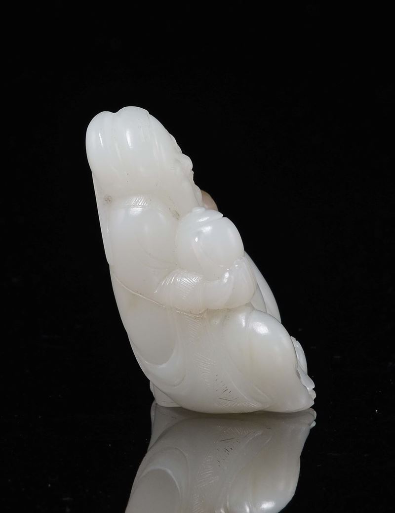 A white jade smiling wise man with teapot, China, Qing Dynasty, 19th century
