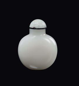 A white jade snuff bottle rounded shaped, China, Qing Dynasty, Qianlong Period (1736-1795)