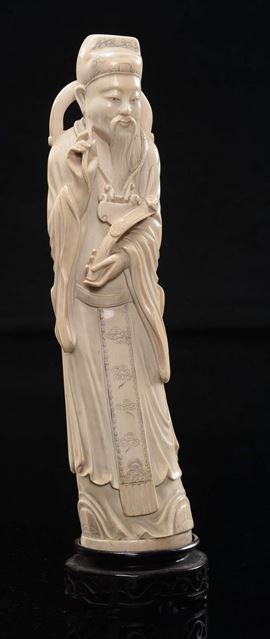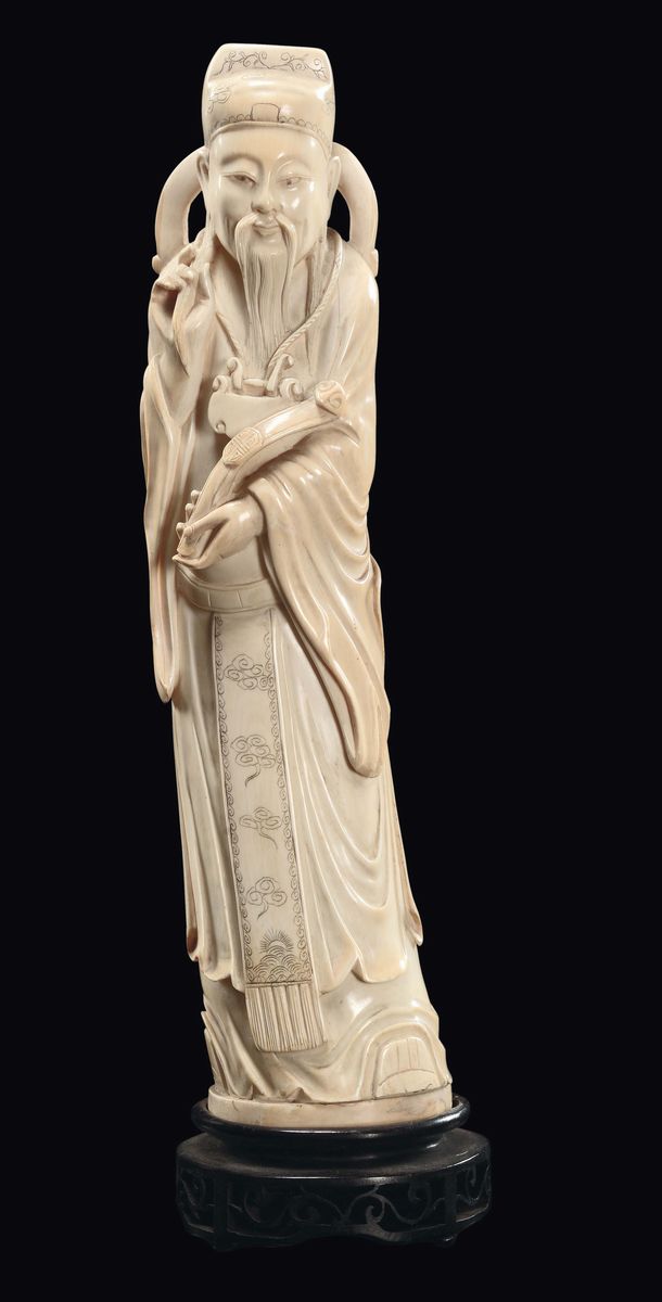 A wise man with hat and ruyi carved ivory, China, Qing Dynasty, late 19th century