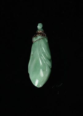 An emerald jade fruit snuff bottle with silver setting, China, Qing Dynasty, 19th century