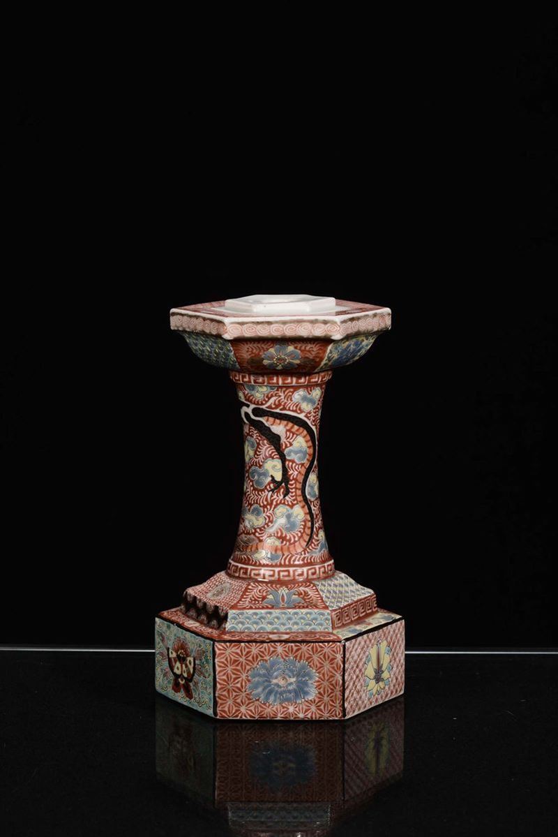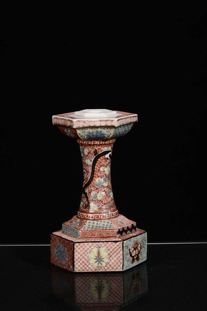 Colonna in porcellana policroma a base esagonale, Cina XX secolo