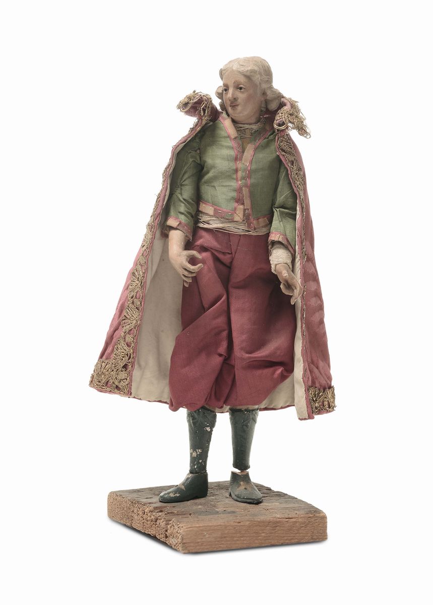 Paggio con abito in seta e mantella rossa, manifattura genovese, XVIII secolo