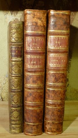 Amstelaedami,Ex typographia Francisci Halmae,1701. Figurato..Elegante legatura coeva in piena pelle.Fa parte del lotto anche:Les oeuvres de M.Boileau despreaux avec des eclaircissemens historiques..,A Paris,Veuve Alix,1740.Due tomi.Legature coeve in piena pelle.