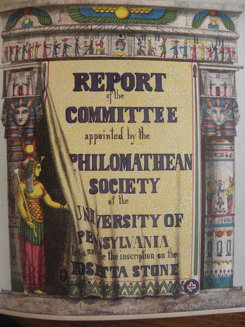 Report of de commitee appointed by the Philomathean Society of the University of Pennsylvania to traslate the inscriptionof the Rosetta Stone
