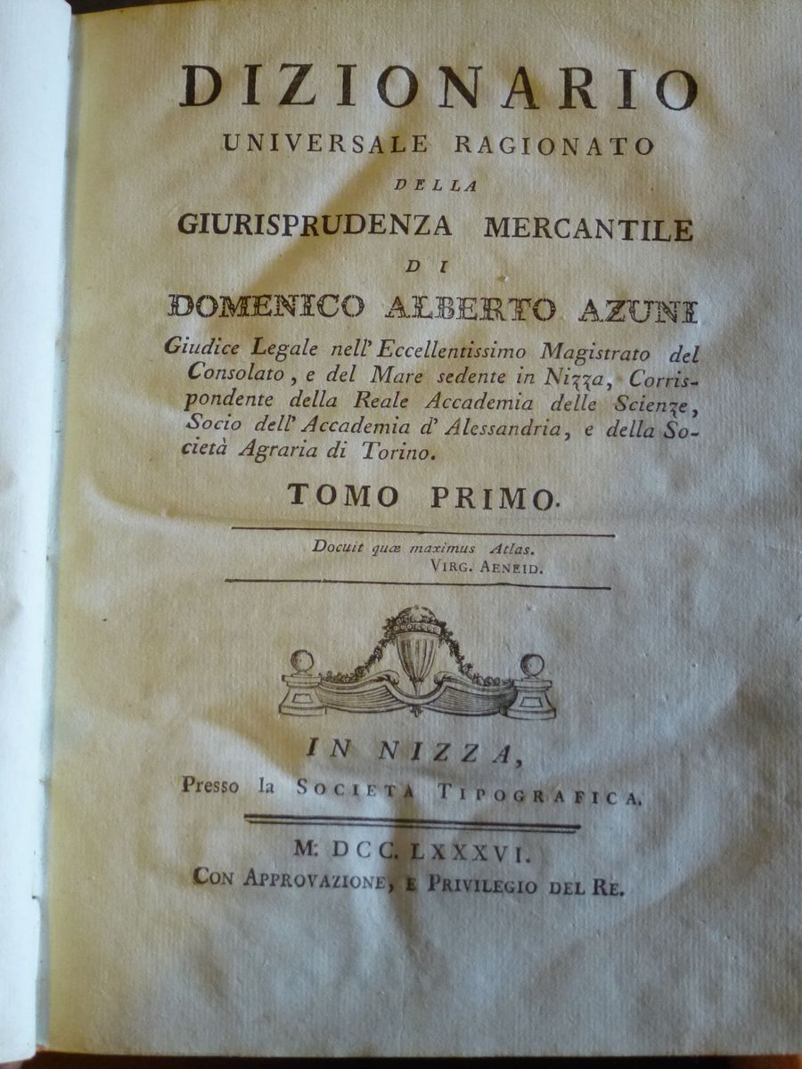 Domenico Alberto Azuni Dizionario universale ragionato della giurisprudenza mercantile
