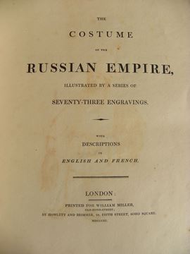 Figurato di pregio-Costumi russi Costume de l'Empire de Russie,représentés dans une séries de soixante et treize planches [..]