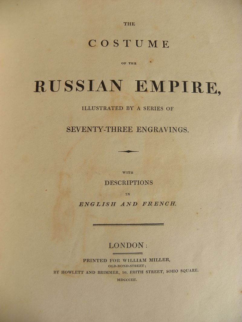 Costume de l'Empire de Russie,représentés dans une séries de soixante et treize planches..