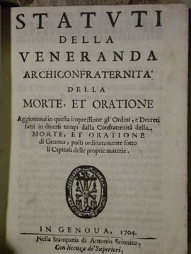 Genova-Statuti confraternita Statuti della veneranda archiconfraternita della morte e oratione..