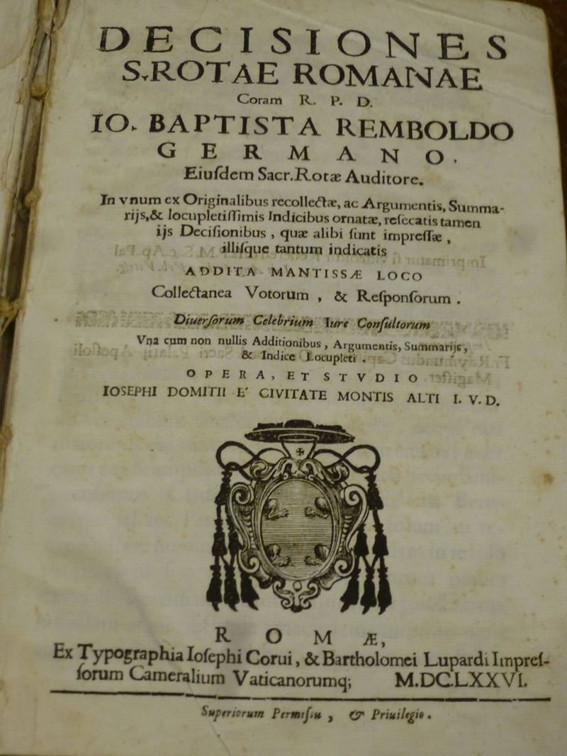 Decisiones s. Rotae romanae. Roma, 1676.