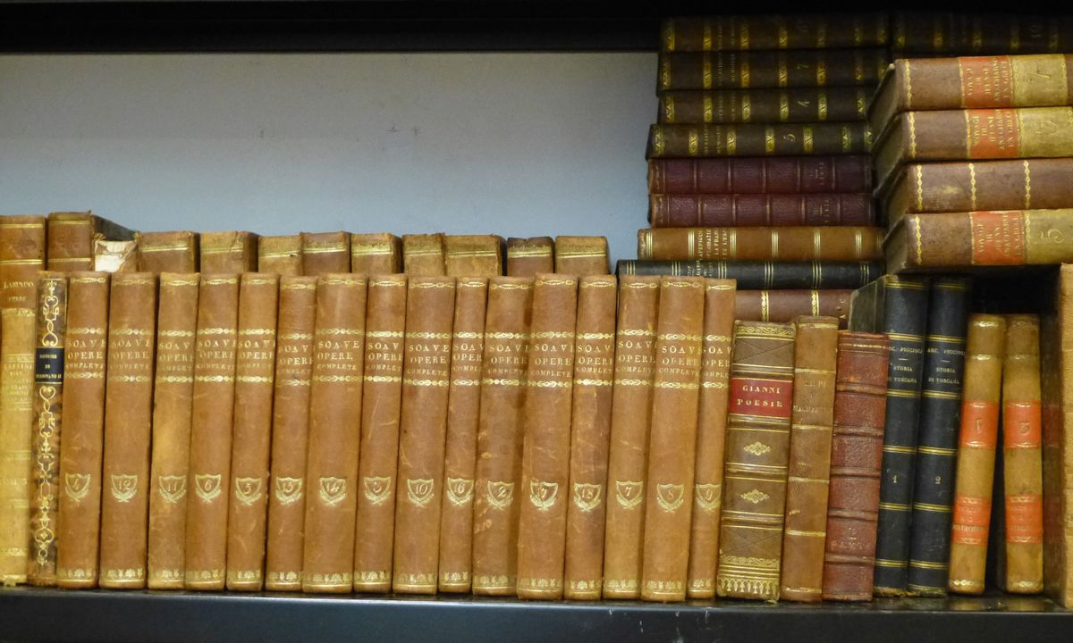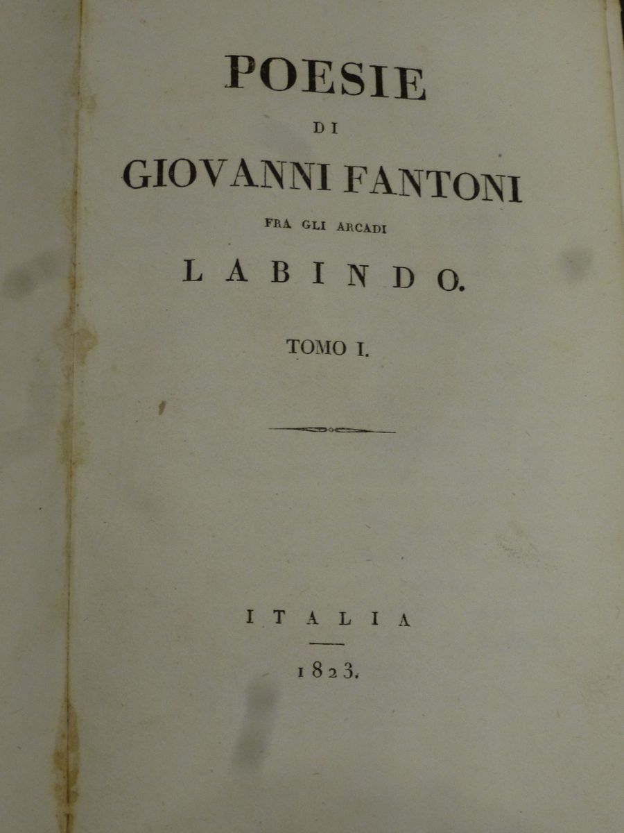 Le vite di Plutarco volgarizzate da Girolamo Pompei. Verona- Venezia, 1799. 10 volumi. Legature coeve in mezza pelle. Insieme nel lotto: Poesie di Giovanni Fantoni. Italia, 1823. 3 volumi. Legature coeve in mezza pelle. Si aggiungono 81 volumetti in bella legatura.
