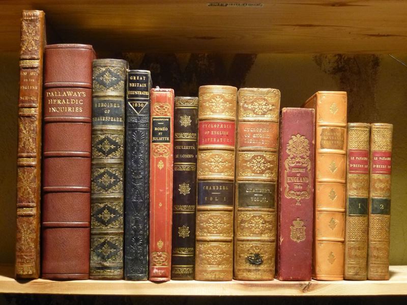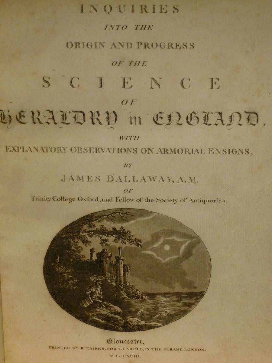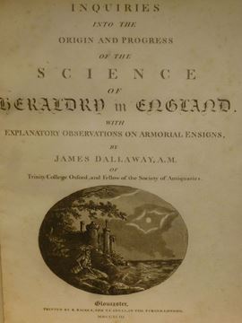 Inquiries into the origin and progress of the science of heraldry in England with explanatory observations on armorial ensigns. Glouchester, R. Raykes, London, 1793. Si uniscono altri 10 volumi di storia e letteratura inglese. Belle legature coeve.