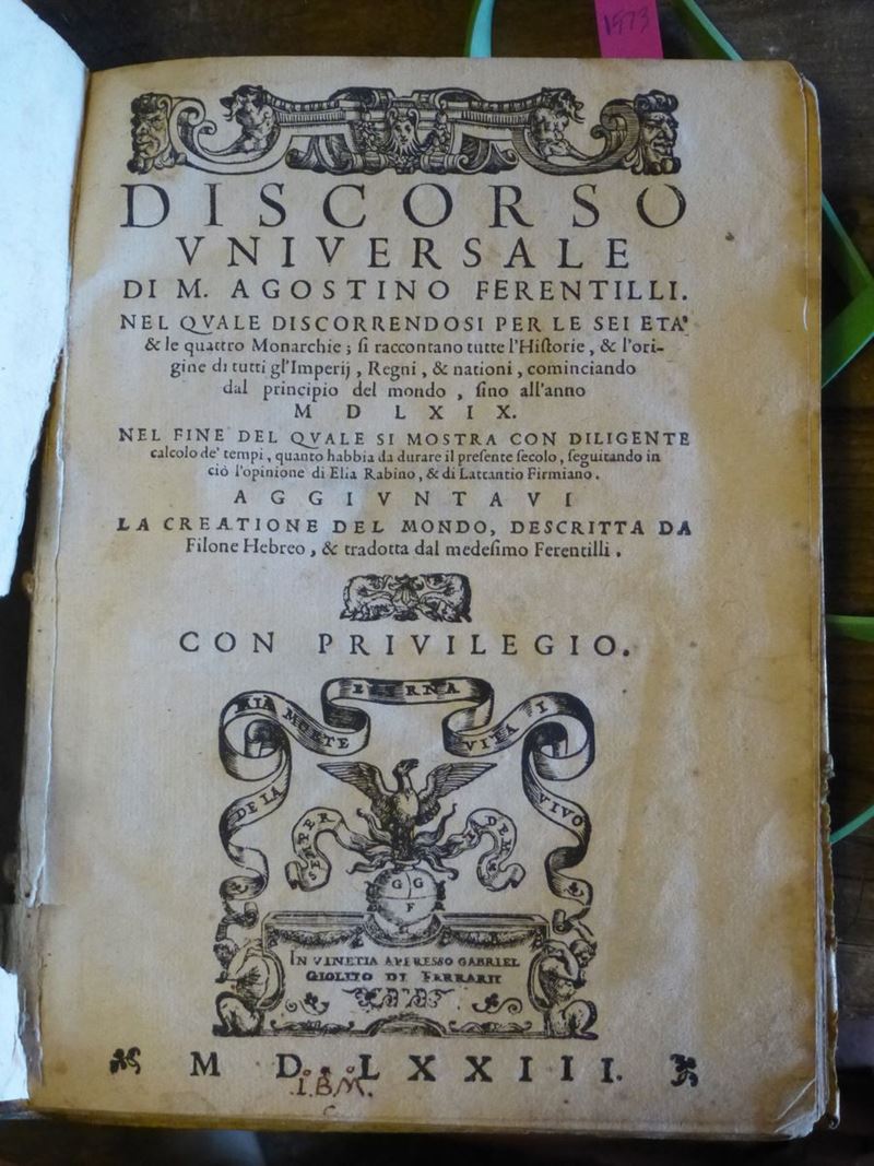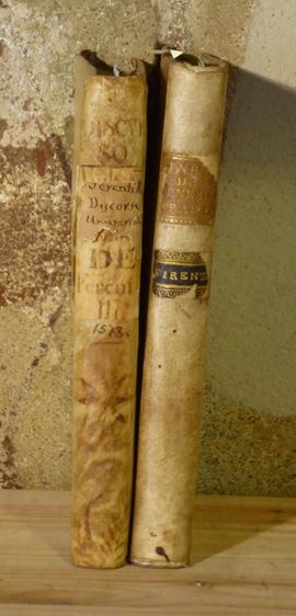 Firenze,Torrentino,1554. Legatura antica in pergamena rigida. Vecchio timbro al frontespizio. Si unisce: Discorso universale di M.Agostino Ferentilli.Venezia,Giolito,1573.Legatura antica in pergamena floscia.figurato.