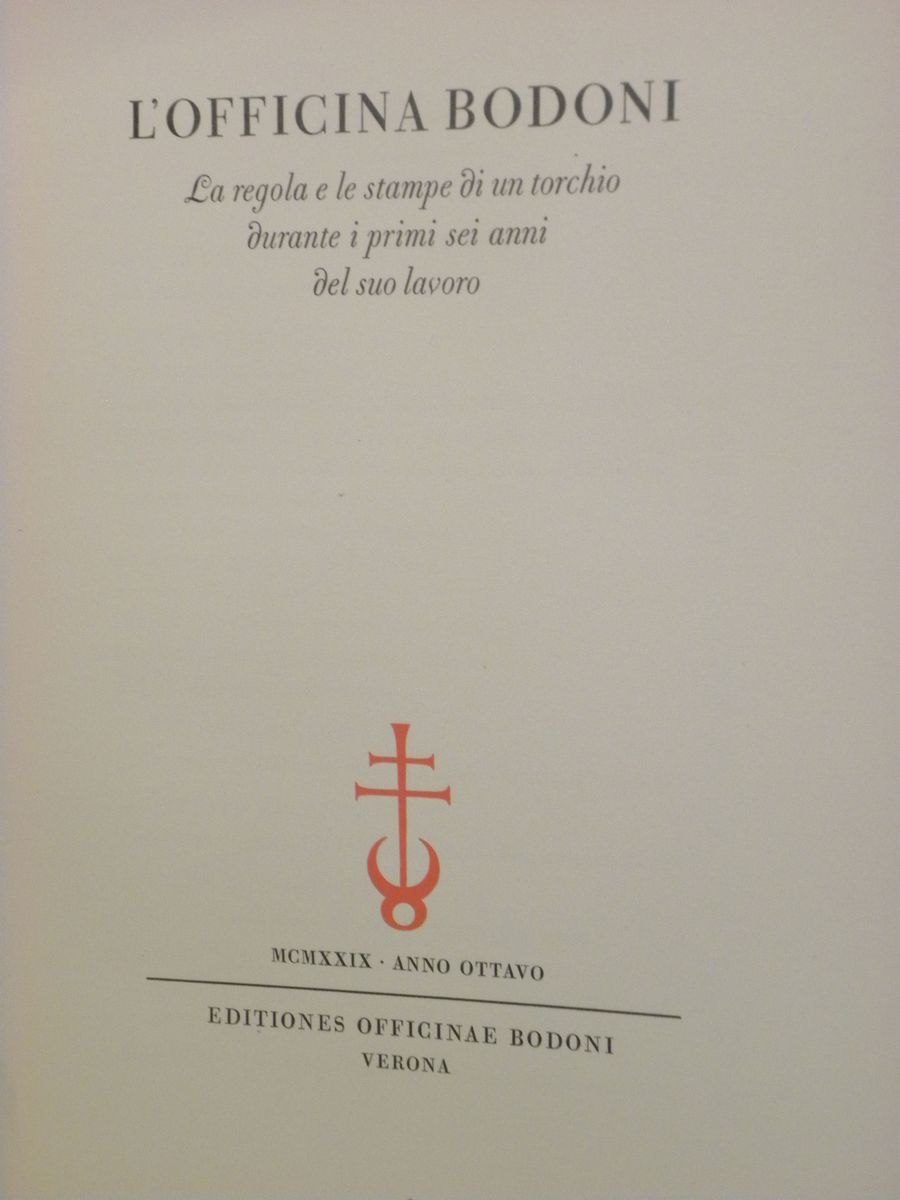 Verona,Editiones Officinae Bodoni,1929.Legatura editoriale in tutta tela con sovraccoperta(Strappata).Numero 16 di 200 esemplari numerati,stampati in lingua italiana.