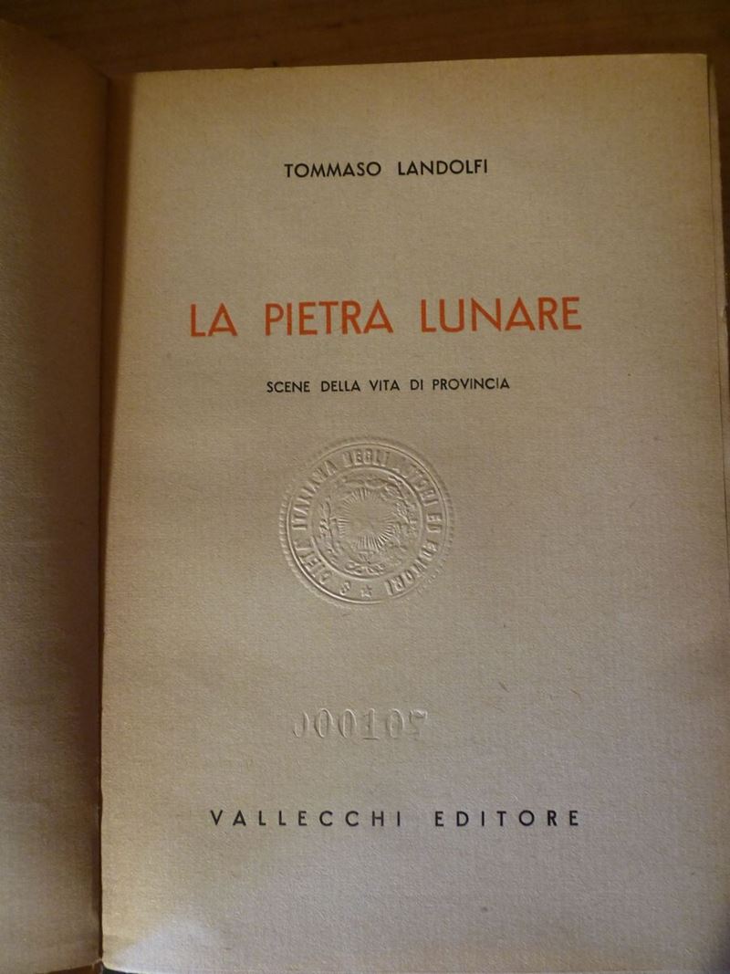Paris,Chamontin,1933. Con dedica a Pastonchi. Si uniscono nel lotto:Valery,Paul-Monsieur Teste. Paris,Gallimard,1929.Con dedica a Pastonchi.Onofri,A.-Simili a melodie rapprese in mondo. Roma,Al tempo della fortuna,1929.Landolfi,La pietra lunare,Vallecchi,1939 e altri 8 opere alcune con dedica a F.Pastonchi.