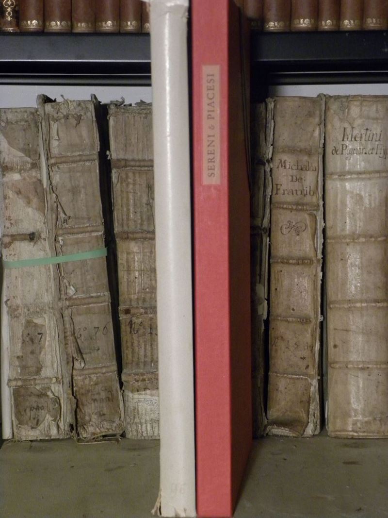 Verona, Riva, 1968. Edizione numerata di 150 esemplari (nostro n°102), brossura editoriale entro camicia e cofanetto. Unito a: Sereni e Piacesi, La guerra girata altrove. Verona, Riva, 1970. Tiratura limitata 150 esemplari (nostro n° 117), esemplare a fogli sciolti entro camicia e custodia editoriale.