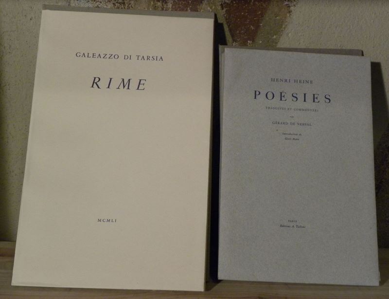Parigi,Alberto Tallone,1950-51.Trecento cinquanta esemplari.Legatura in brossura editoriale entro camicia e custodia.Biglietto con invio autografo di Tallone a Francesco Pastonchi. Si unisce nel lotto:Heine,Poesies,Paris,Tallone,1948.Tiratura di 365 esemplari.Brossura editoriale entro camicia e custodia.