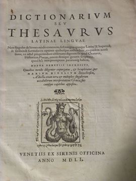 Tutte le rime, Venezia, Sessa, 1558. Legatura in pergamena rigida. / Piccolomini Alessandro, De la institutione de tutta la vita... Venezia, Scoto, 1543 / Roseo Mambrino, La Istitutione del prencipe Christiano... Venezia, Giolito, 1560. / Dictionarium seu Thesaurus latinae linguae. Venezia, Sirenis Officina, 1551 (un volume di tre).