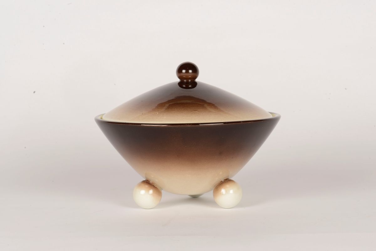ceramica marrone con interno giallo. Sotto la base Galvani, Pordenone, LU. Diametro cm 17. Altezza cm 12