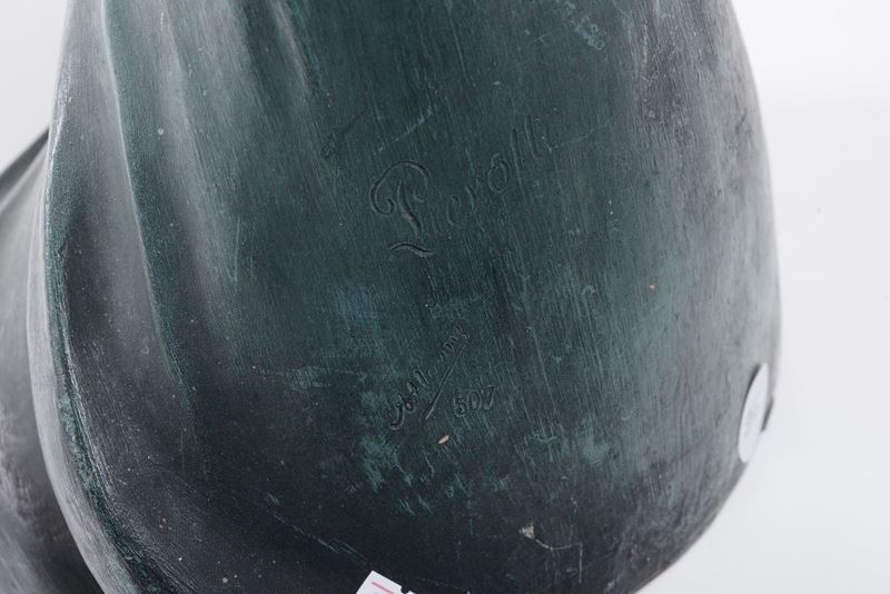Vaso in terracotta con figura femminile, firma Pierotti sul retro, altezza cm 66