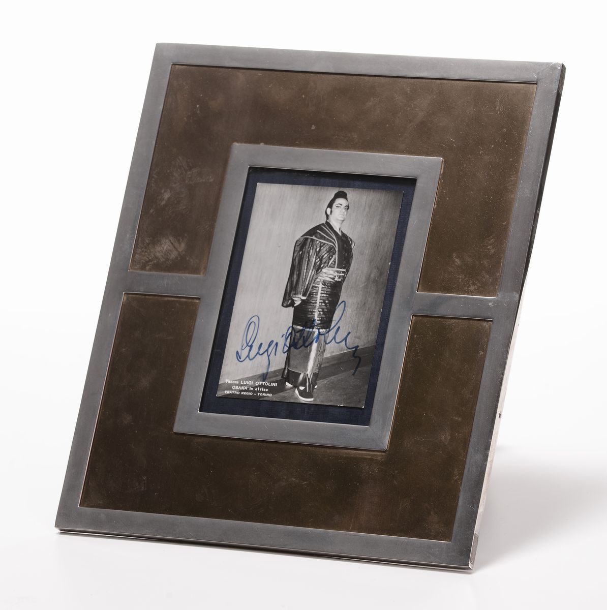 Portafoto in metallo anni '70 con foto e dedica del tenore Ottolini