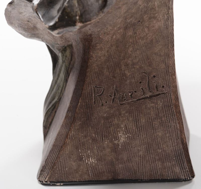 Busto femminile in terracotta. Firma dell'autore incussa. Altezza cm 45, 1900 circa