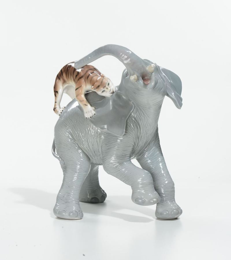 Gruppo in terracotta maiolicata modellata a colaggio e decorata in policromia sotto vernice. Altezza cm 30