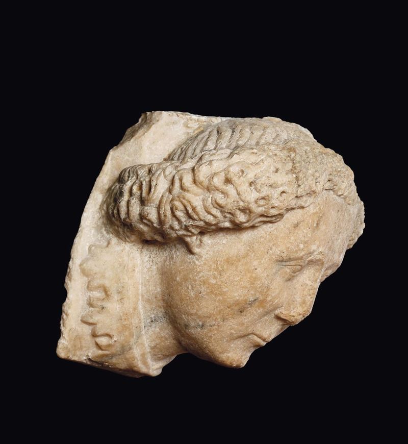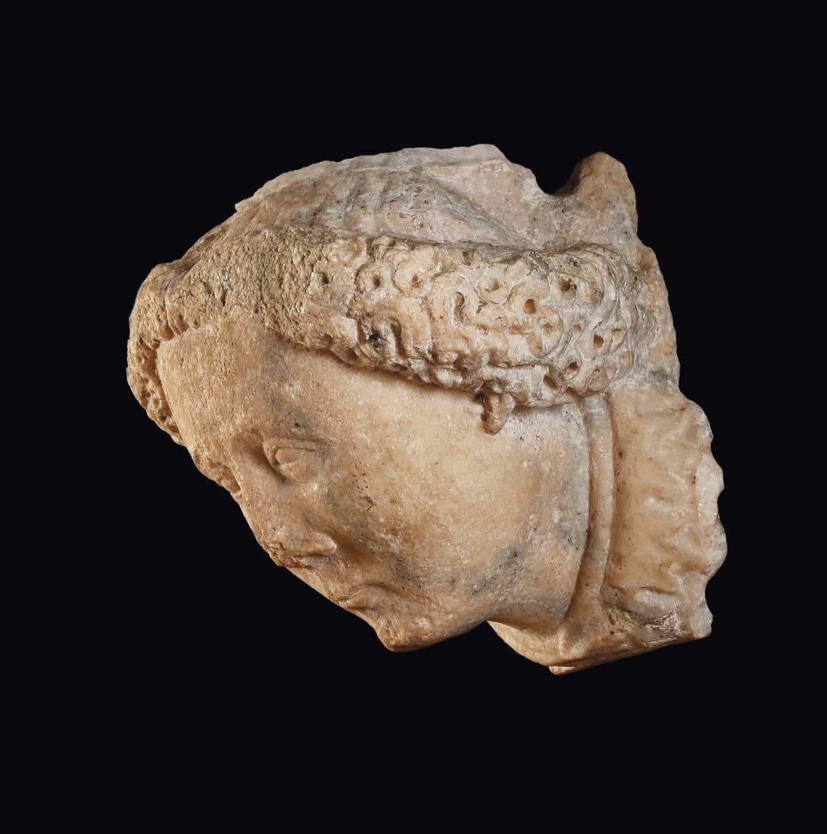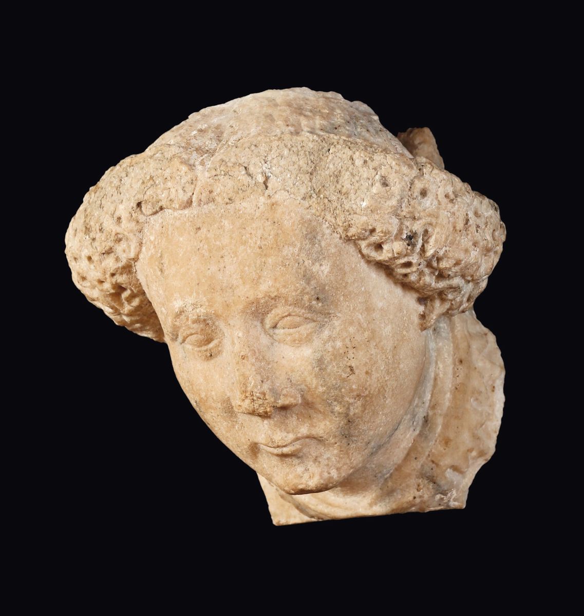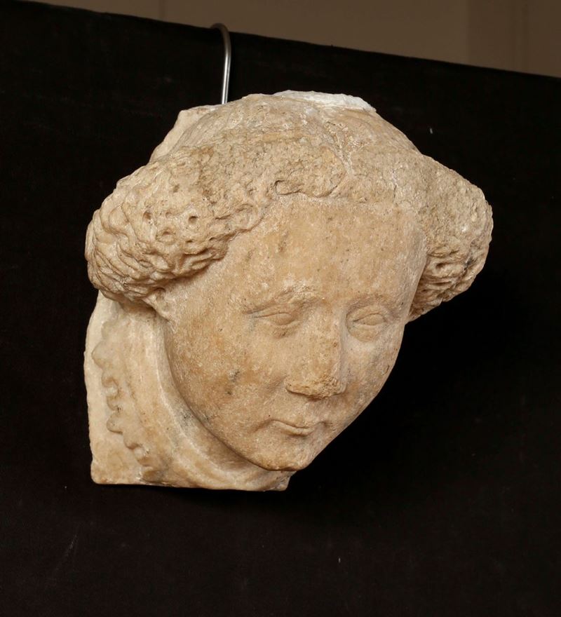A marble deacon’s head, French-Gothic art, probably Bourgogne, 14th century