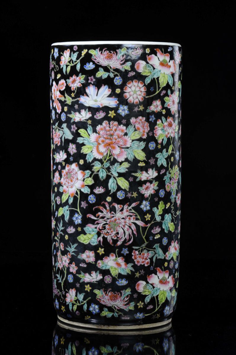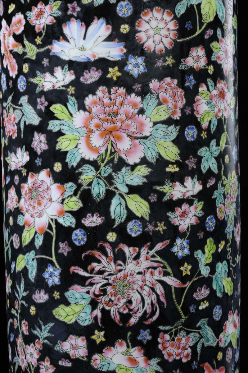 A black-ground polychrome enamelled porcelain vase with peach flowers, China, 20th century
