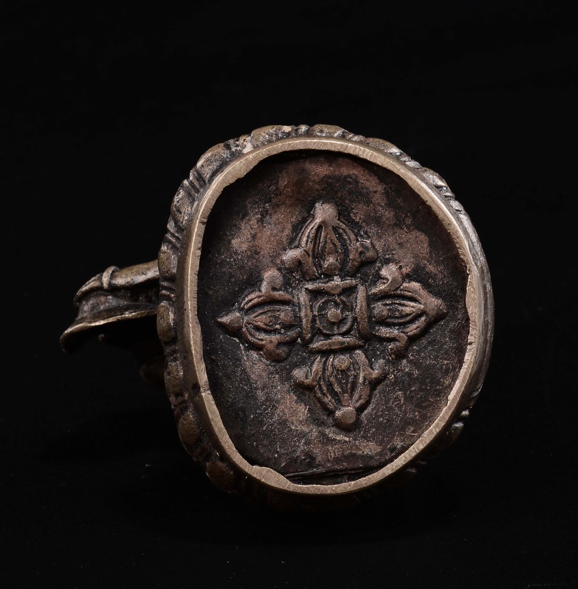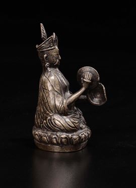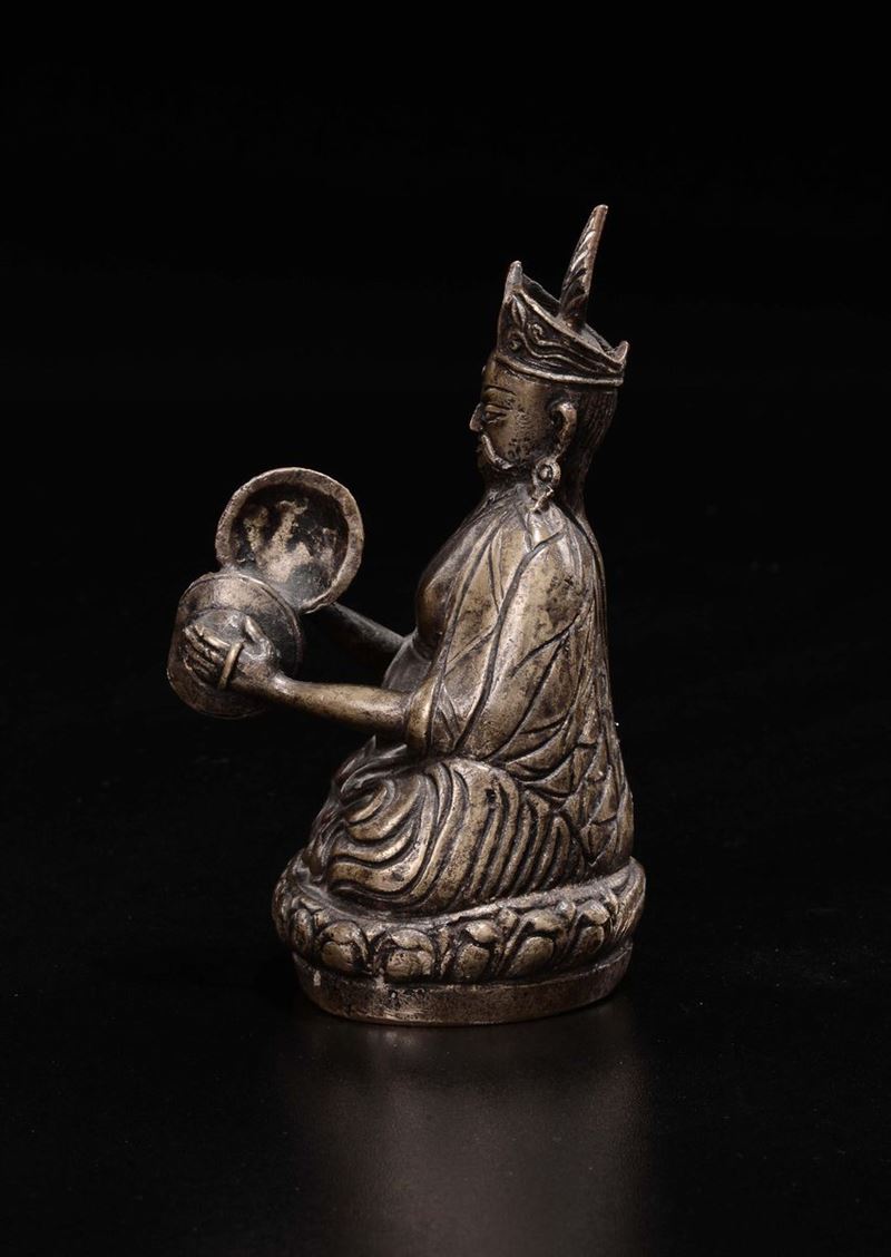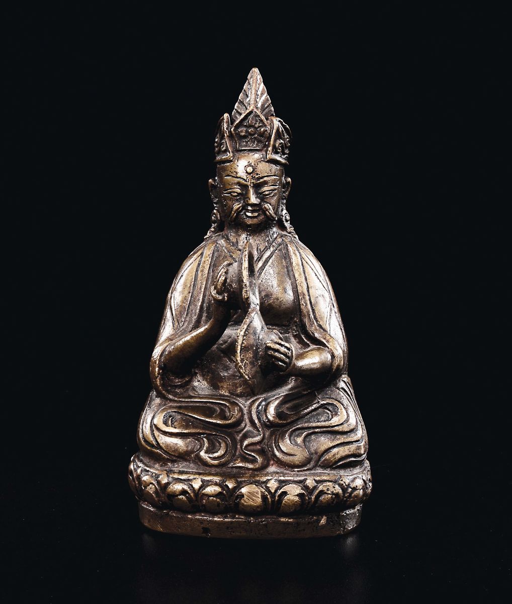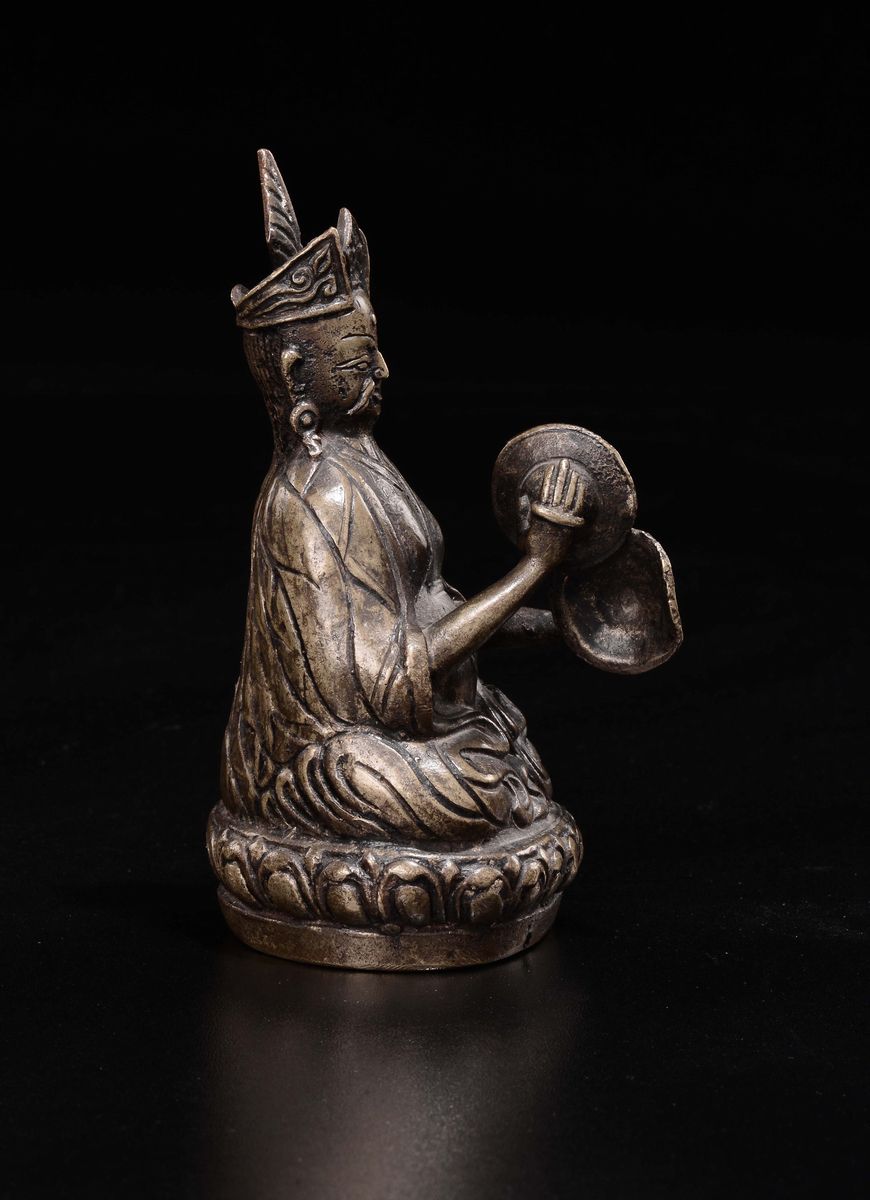 A bronze playing wise man on a lotus flower, China, Qing Dynasty, 19th century
